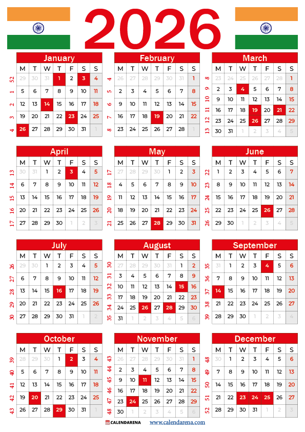 Your 2026 Calendar With Indian Holidays Pdf should ideally account for: