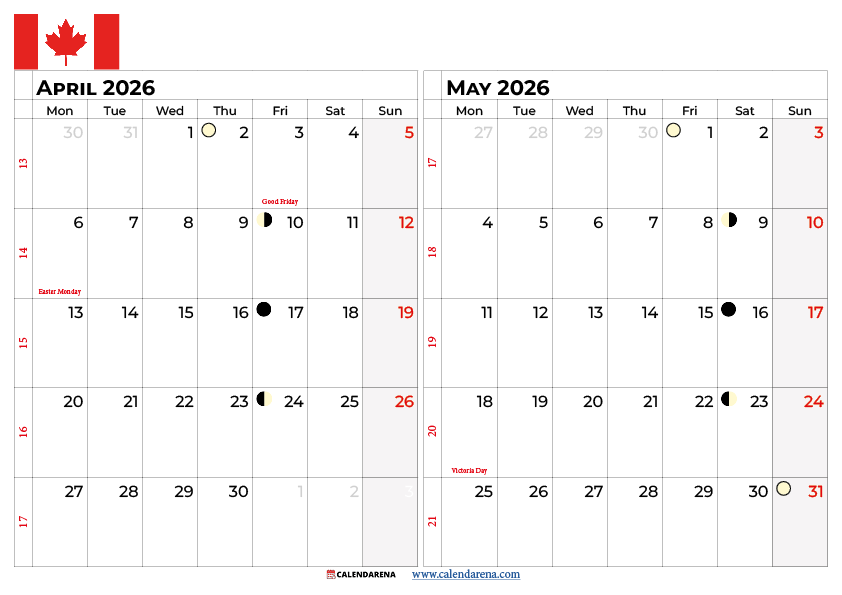 For extended planning horizons, the April And May 2026 Calendar Canada offers substantial advantages over single-month views. This two-month format helps Canadians visualize how activities and commitments flow across the spring season.