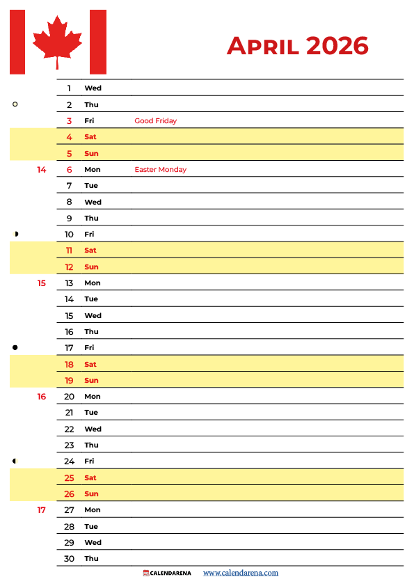 Our website provides the April Calendar 2026 With Holidays Canada in two popular formats:
