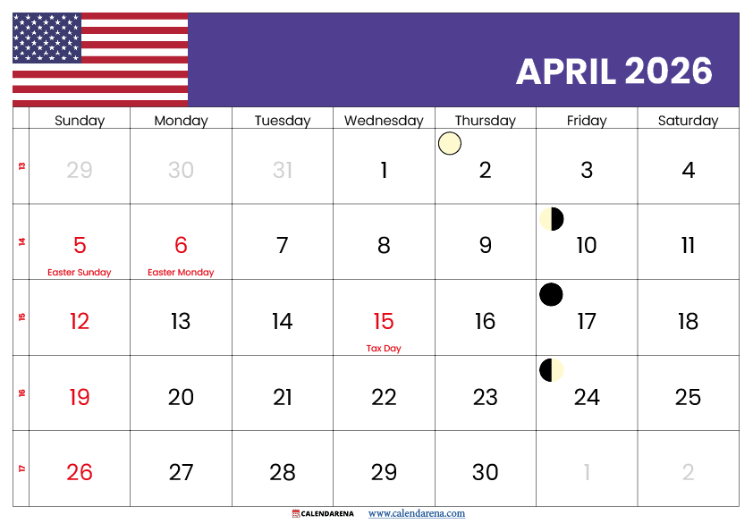 April 2026 Calendar With Holidays features an exceptional collection of religious, national, and cultural celebrations that make this month particularly significant for planning purposes.