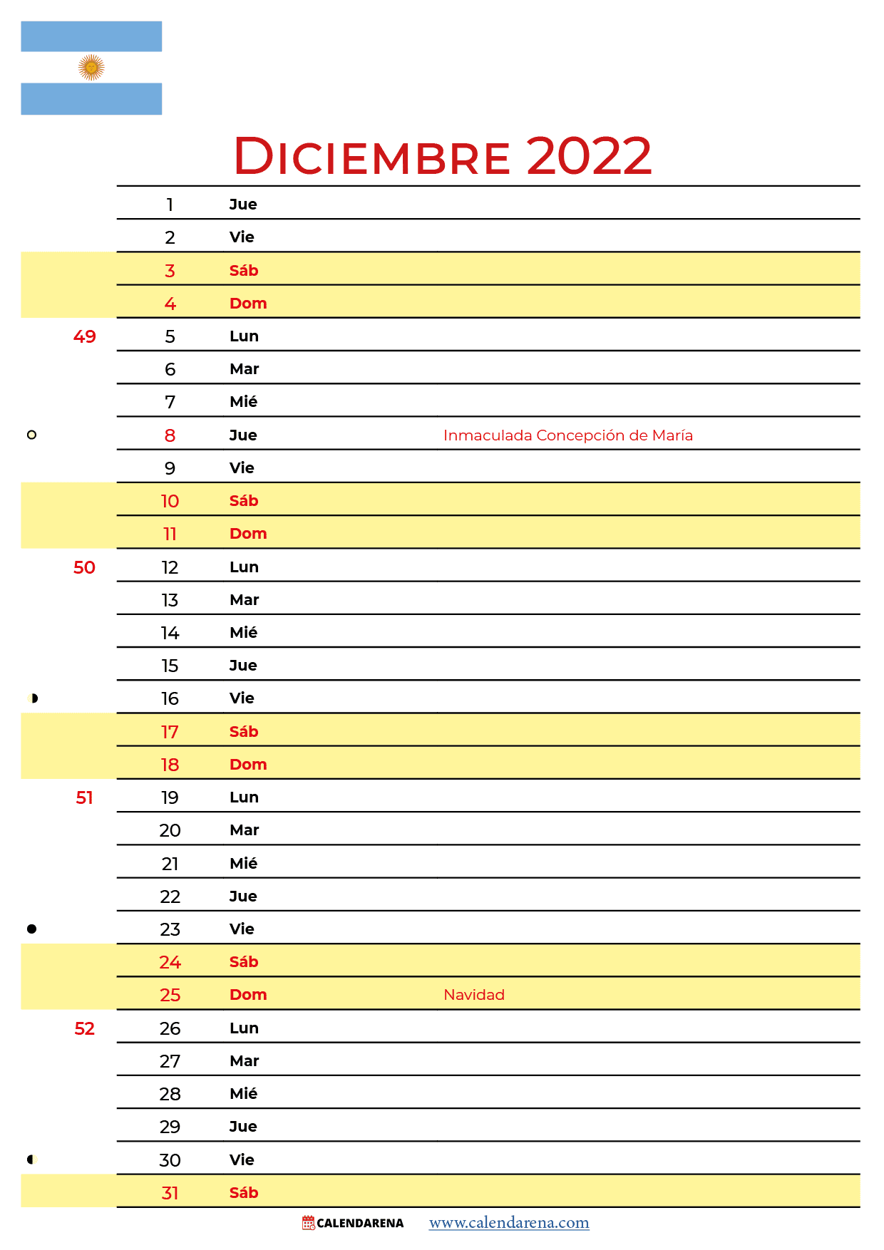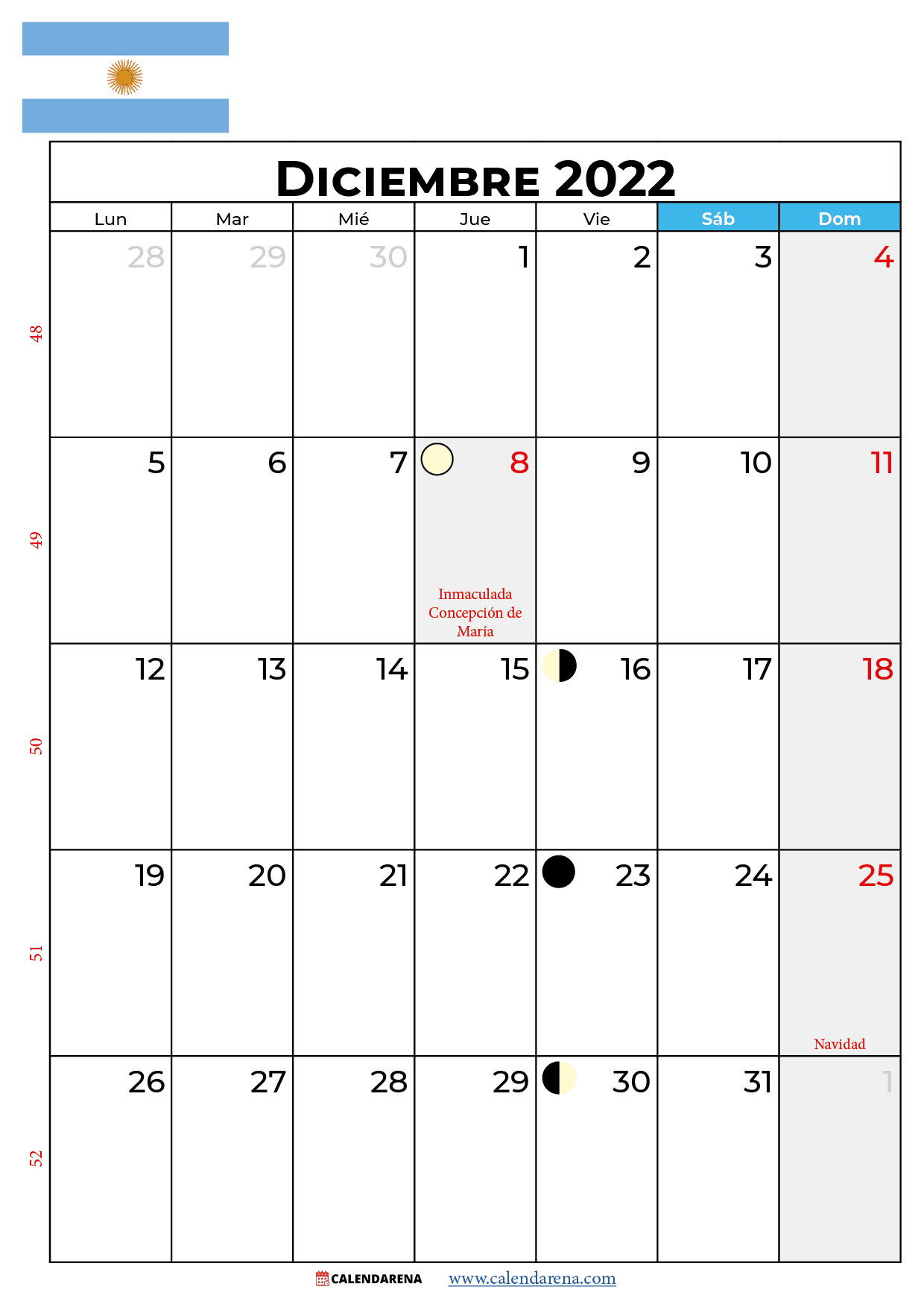 Diciembre 2022 calendario Argentina