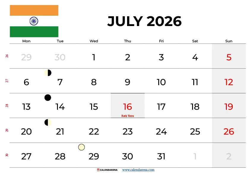 July 2026 Calendar South Africa