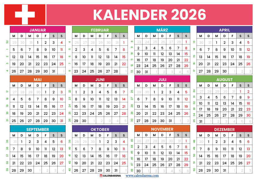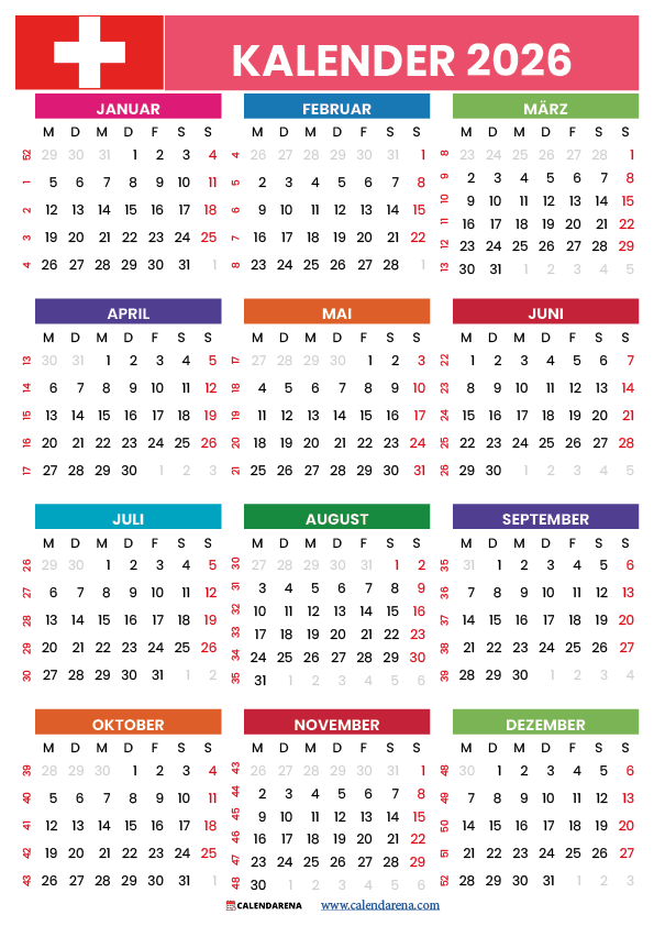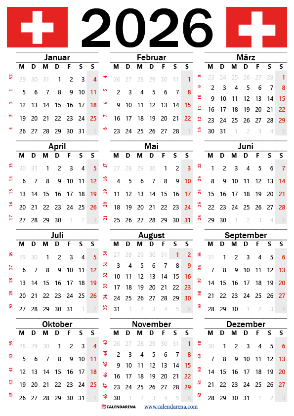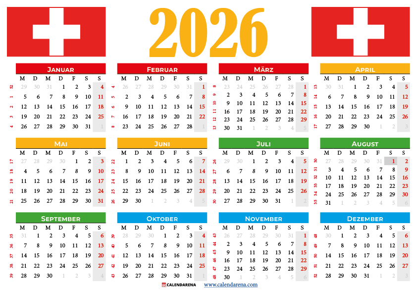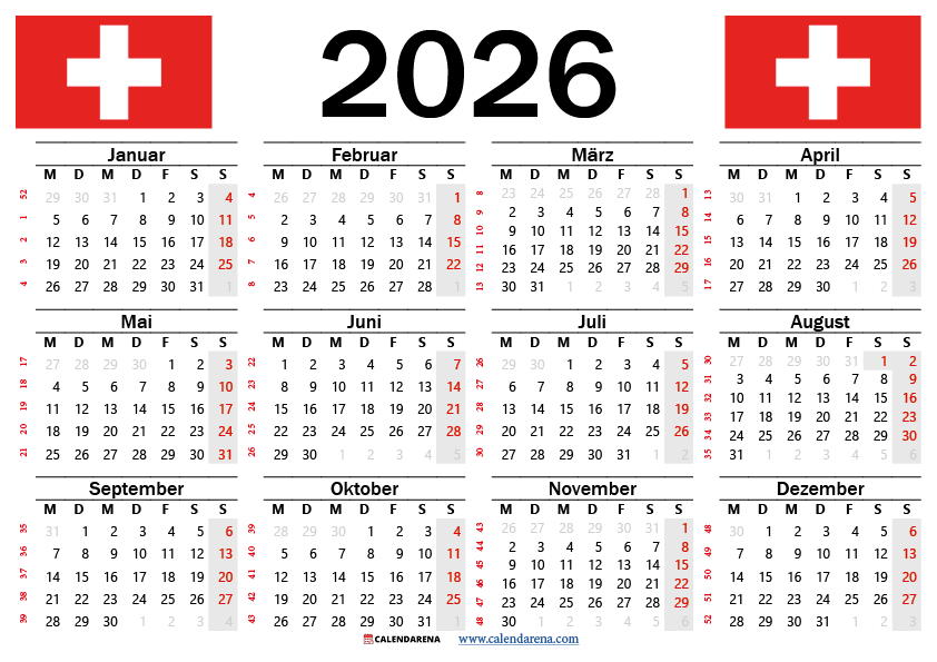 Kalender 2026 Schweiz Zum Ausdrucken