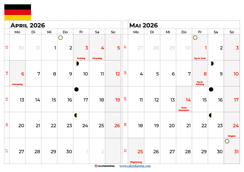 Der Kalender April Mai 2026 bietet erweiterte Planungsmöglichkeiten: