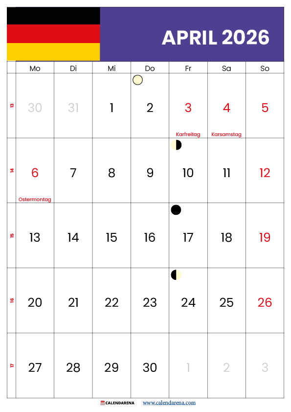 Der Kalender April 2026 Mit Feiertagen enthält mehrere bedeutende christliche Feiertage, die das Osterfest umrahmen: