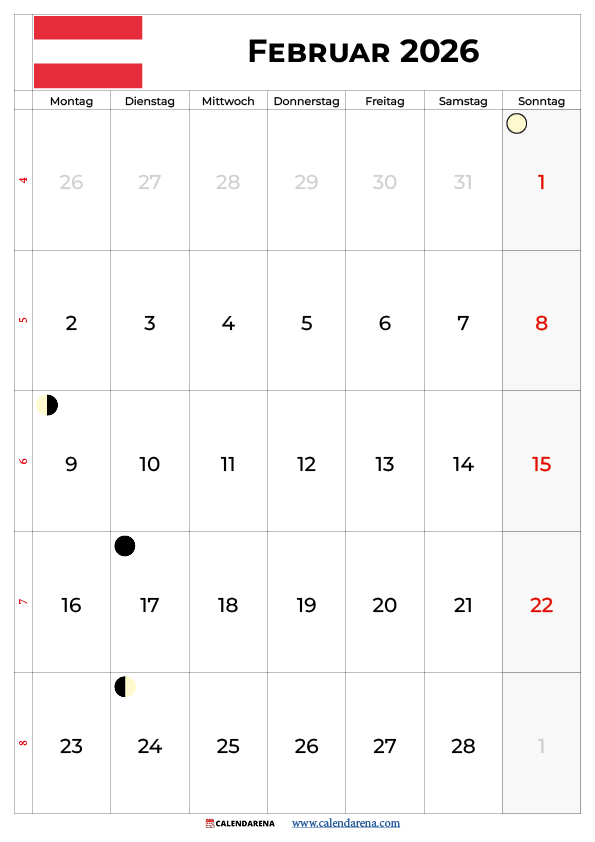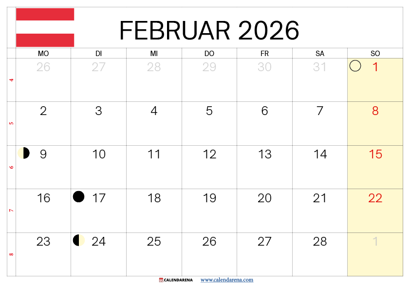 Februar 2026 Kalender Österreich: Druckbare Optionen