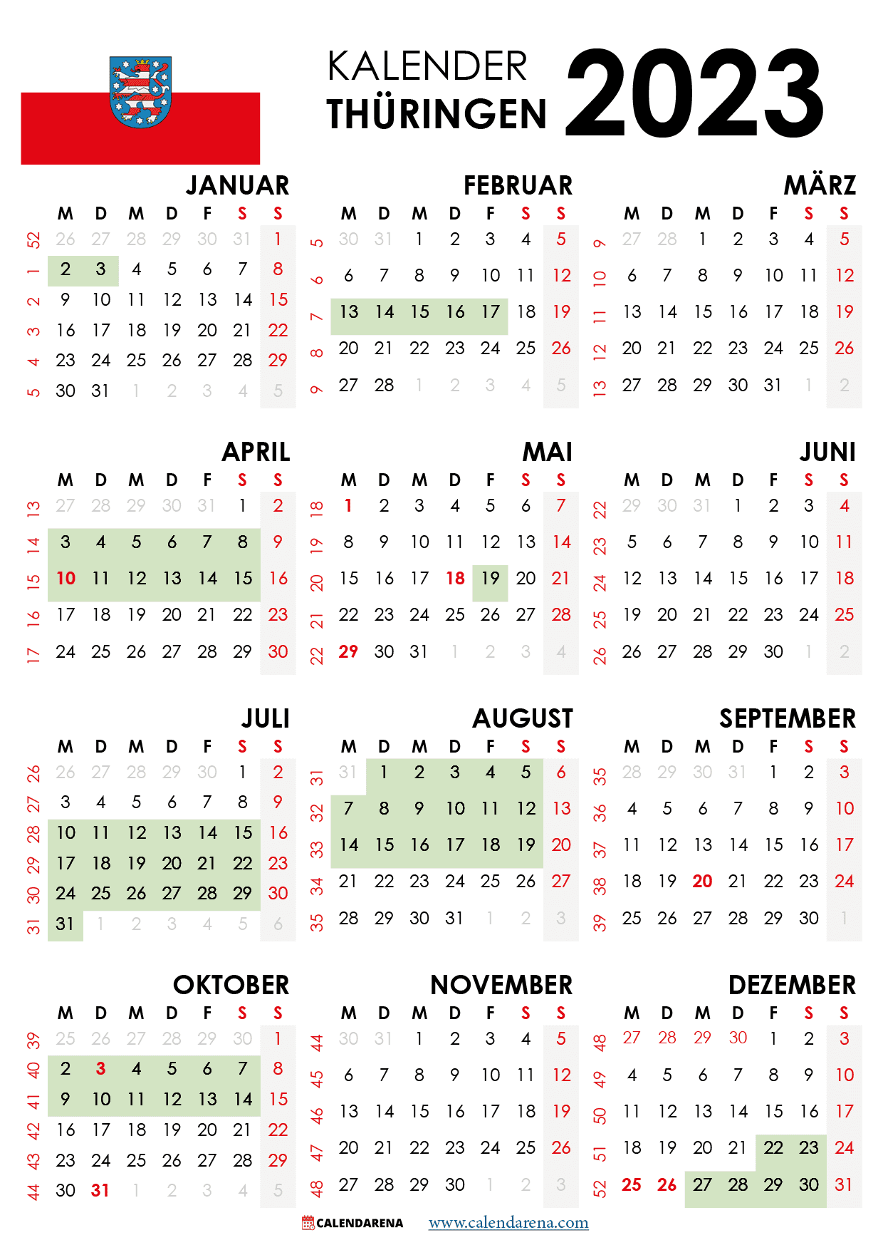 Kalender thüringen 2023 zum Ausdrucken