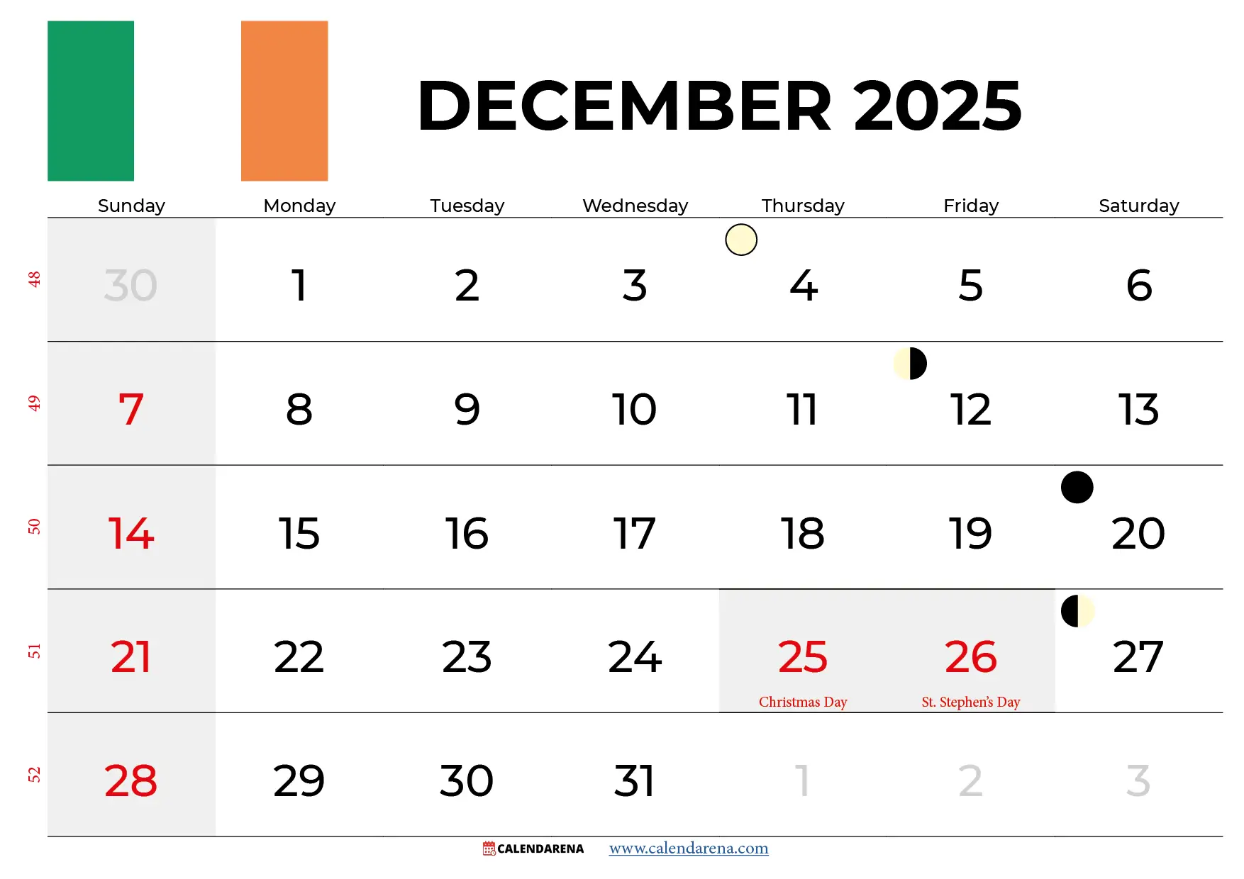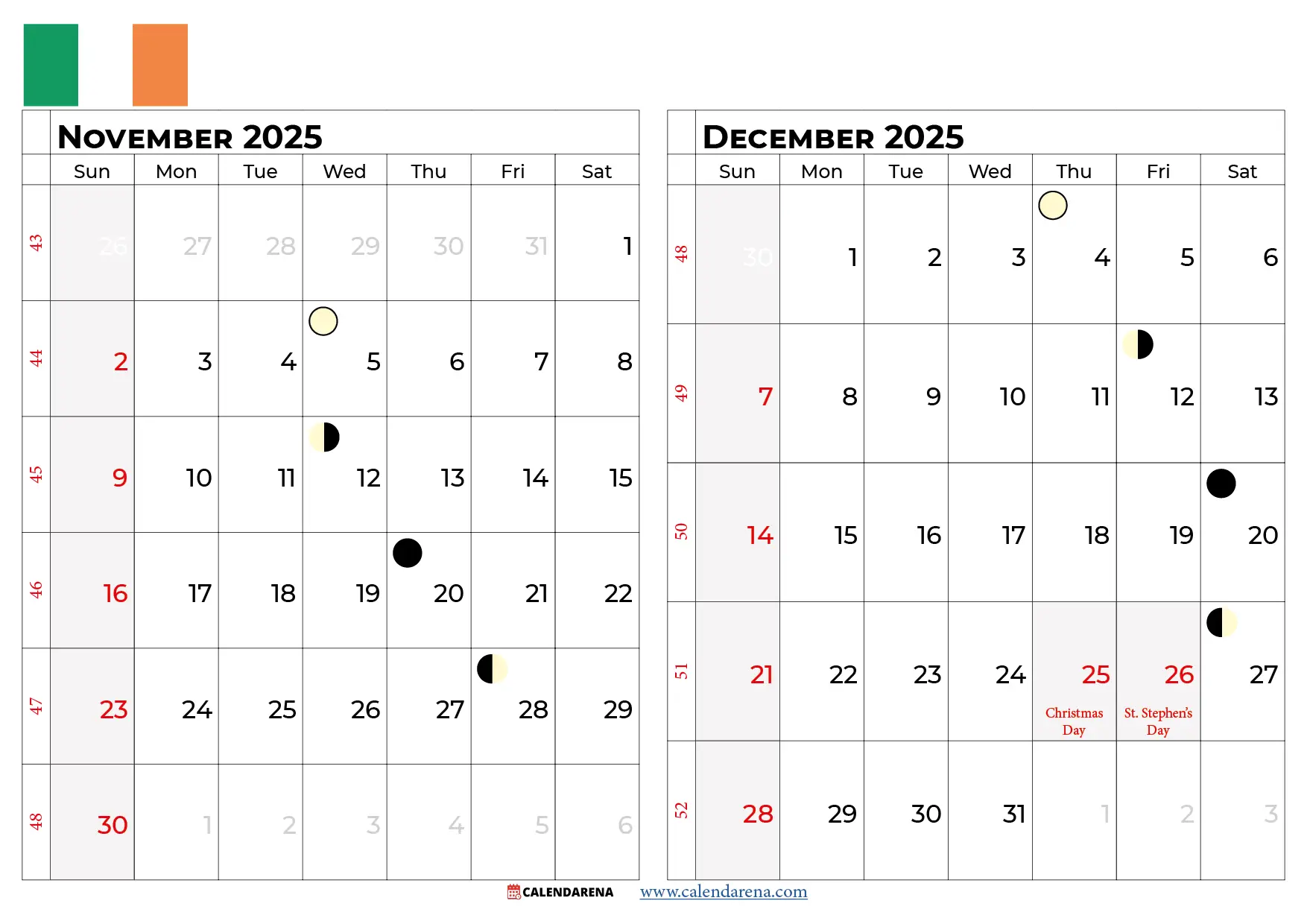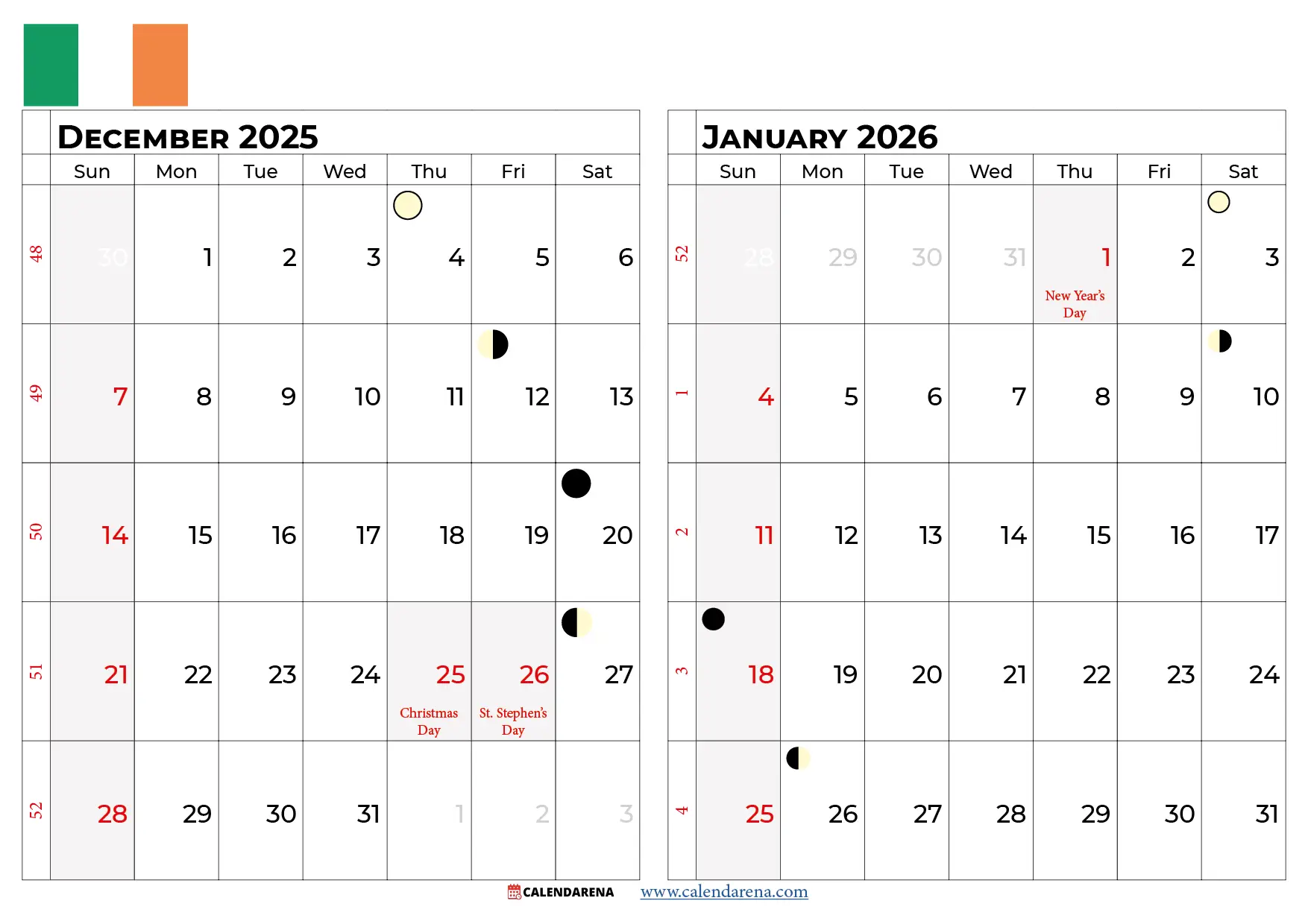 December 2025 January 2026 Calendar Ireland: Looking Ahead