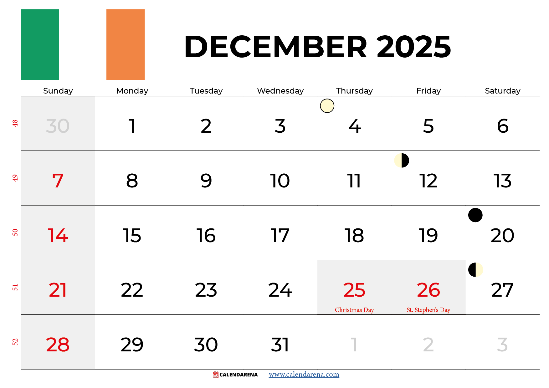 Calendar December 2025 Ireland: Essential Dates and Structure