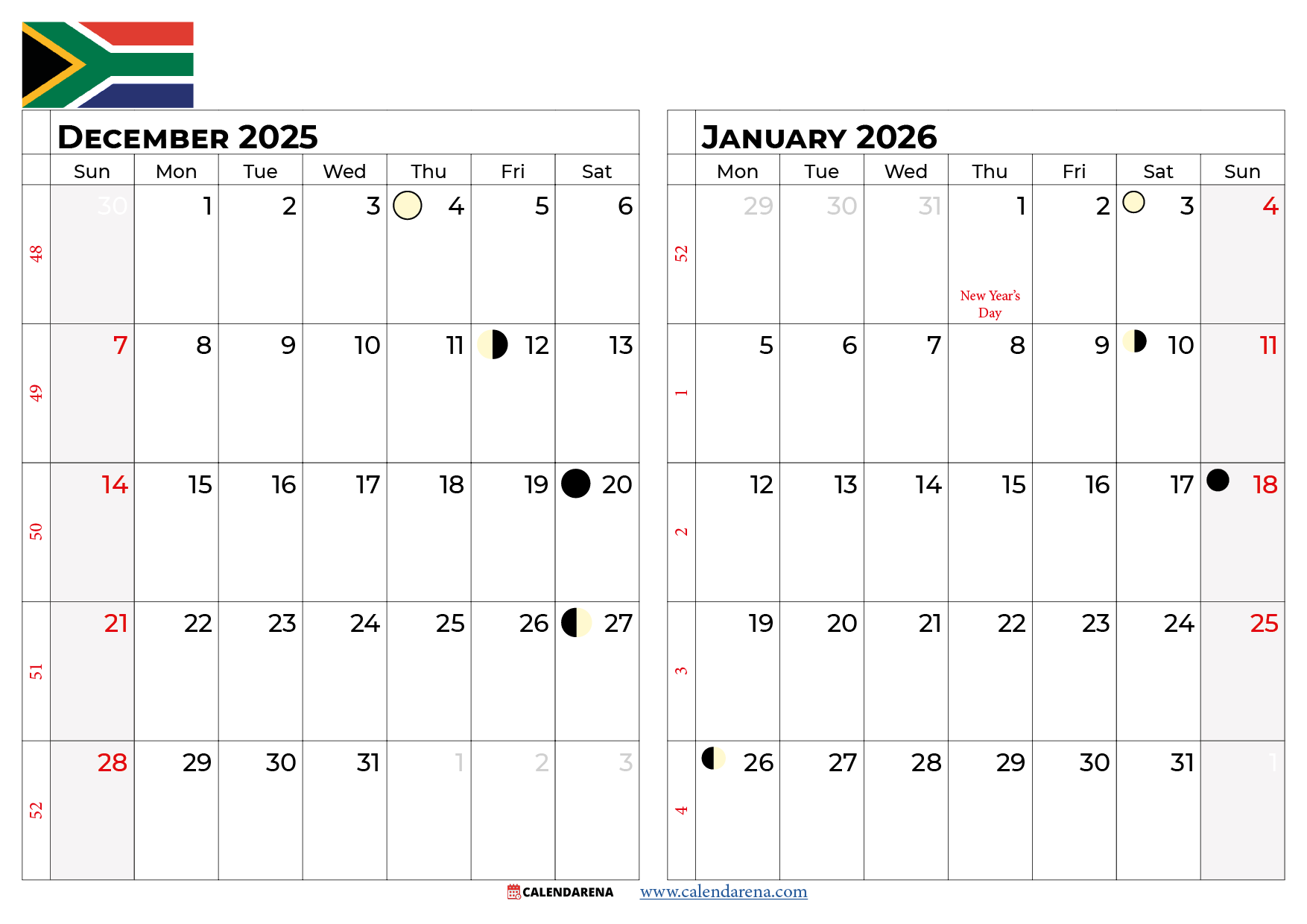 December 2025 January 2026 Calendar With Holidays South Africa