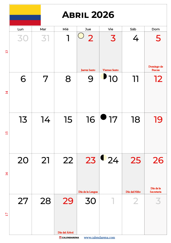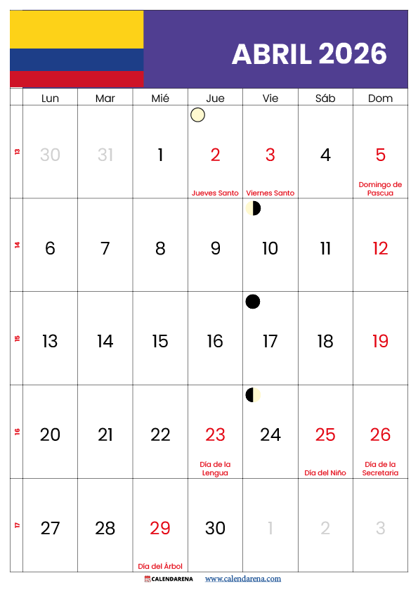 El Calendario Abril 2026 Colombia es una herramienta esencial para organizar tus actividades personales, académicas y laborales durante uno de los meses más significativos del año. Abril 2026 trae consigo la Semana Santa, importantes observancias internacionales y la llegada de la Feria del Libro. En esta guía completa encontrarás calendarios imprimibles en PDF y JPG, información sobre festivos colombianos, y consejos prácticos para maximizar tu planificación mensual.