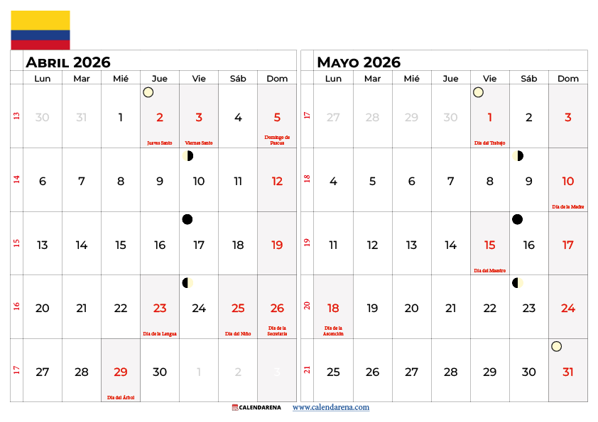 ¡Descarga tu calendario de abril 2026 ahora y comienza a planificar un mes extraordinario! Suscríbete a nuestras actualizaciones para recibir calendarios mensuales, consejos de productividad y recordatorios de festivos colombianos directamente en tu correo.