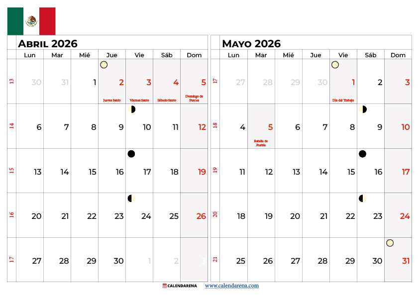 Calendario Abril Y Mayo 2026 Mexico