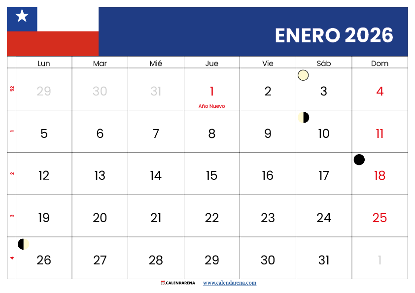 El Calendario Enero 2026 Para Imprimir Chile está optimizado para: