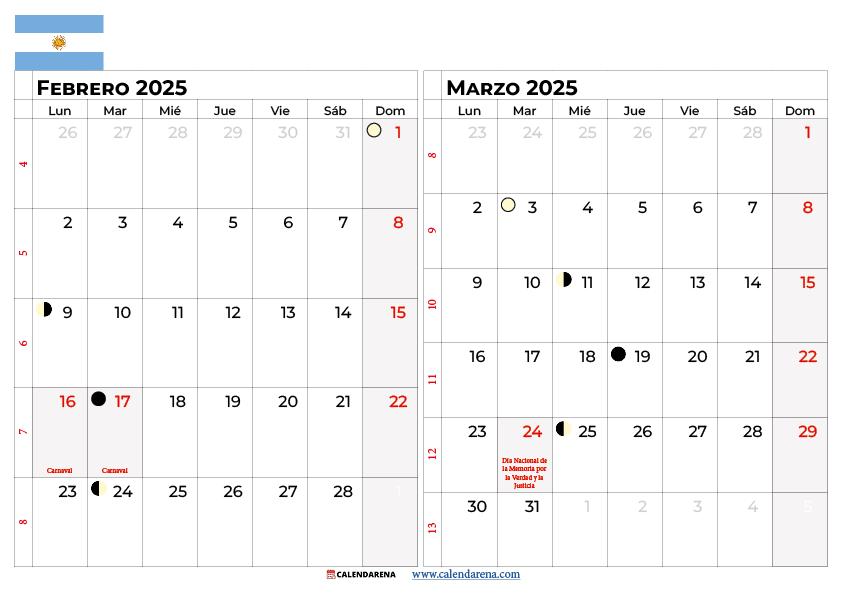 Nuestro Calendario Febrero Marzo 2026 Argentina incluye: