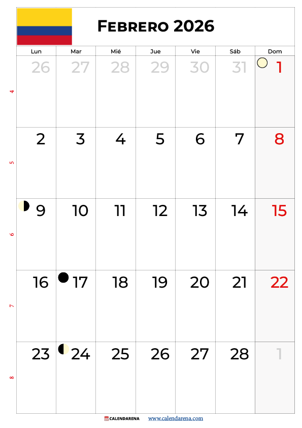 En esta guía completa, descubrirás todo lo que necesitas saber sobre el Calendario Febrero 2026 Colombia Con Festivos, opciones de descarga gratuita en PDF y JPG, las fases lunares del mes, y consejos prácticos para aprovechar al máximo tu planificación mensual. Febrero 2026 comienza un domingo, lo que facilita la organización semanal desde el primer día del mes.