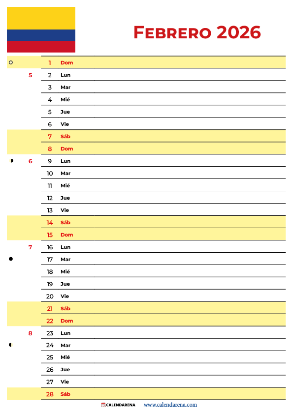 Nuestro Calendario Febrero 2026 Para Imprimir Colombia está disponible en: