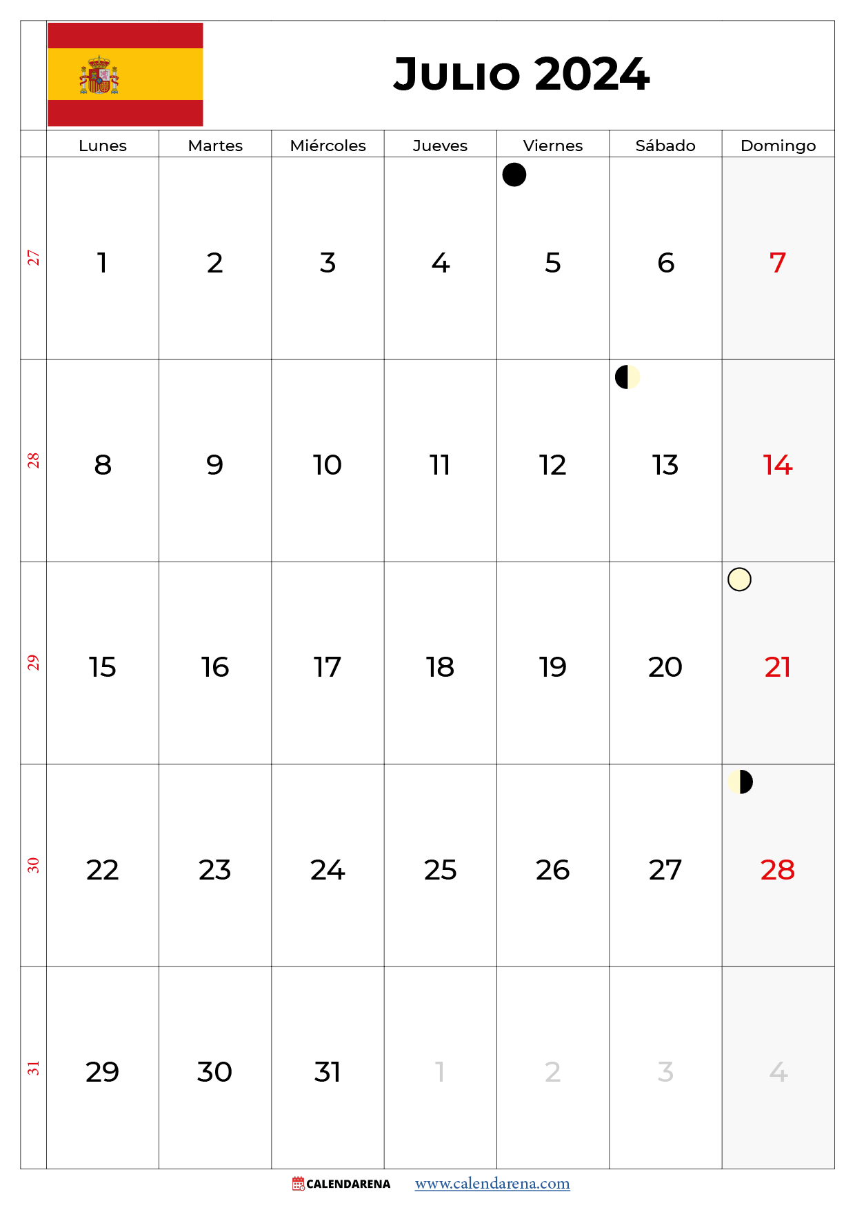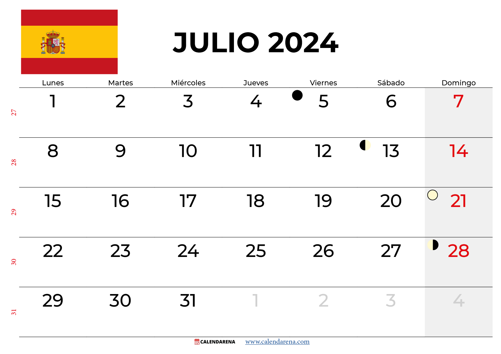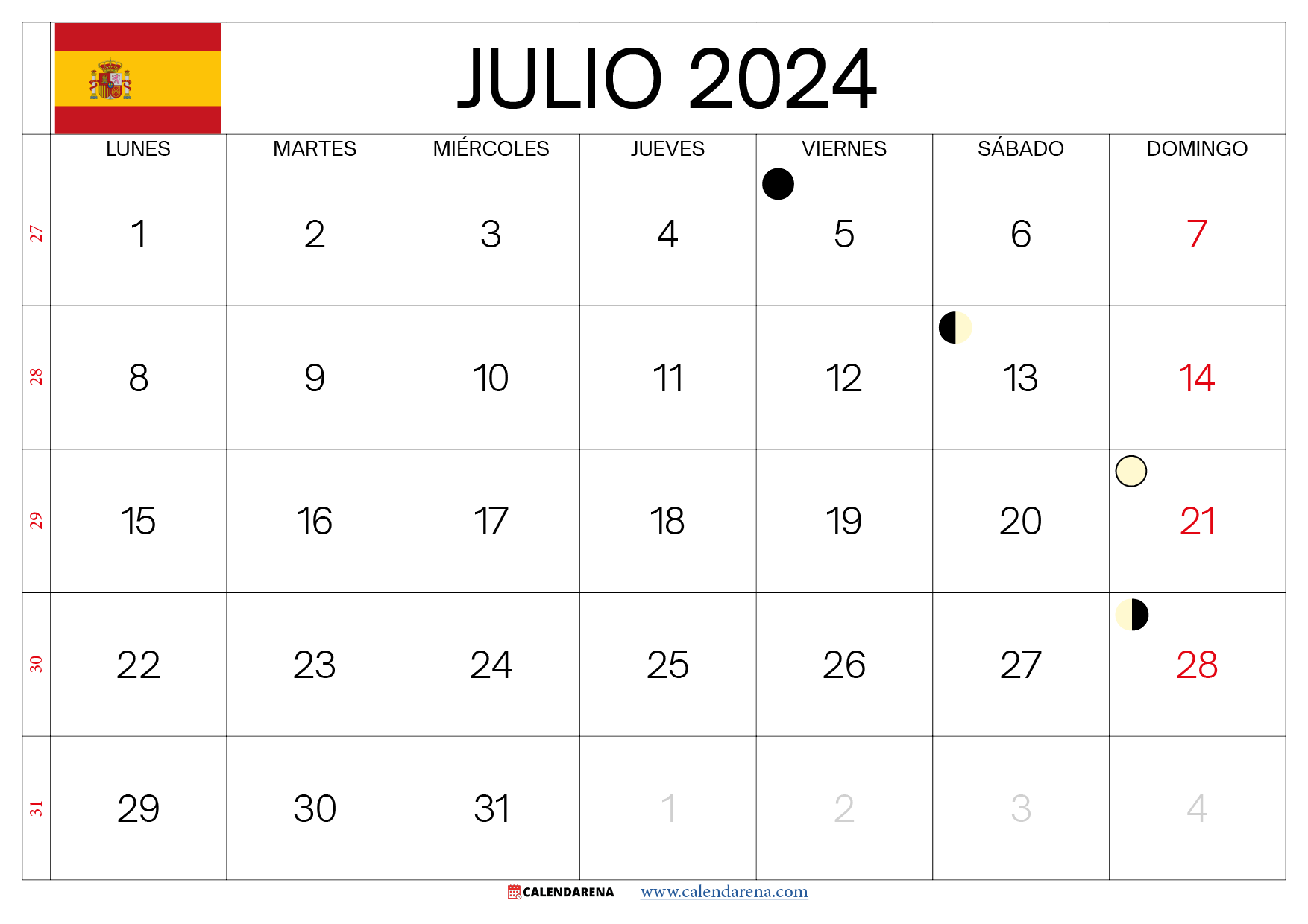 Calendario julio 2024 españa Para Imprimir