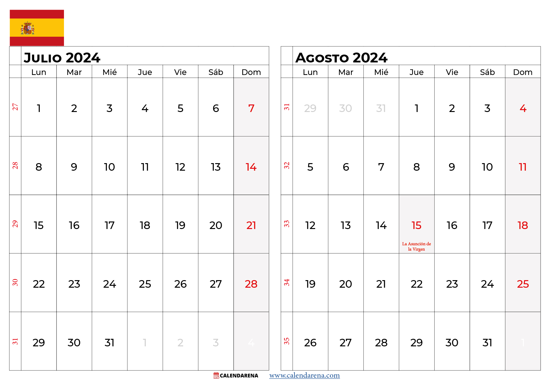 Calendario julio y agosto 2024 España
