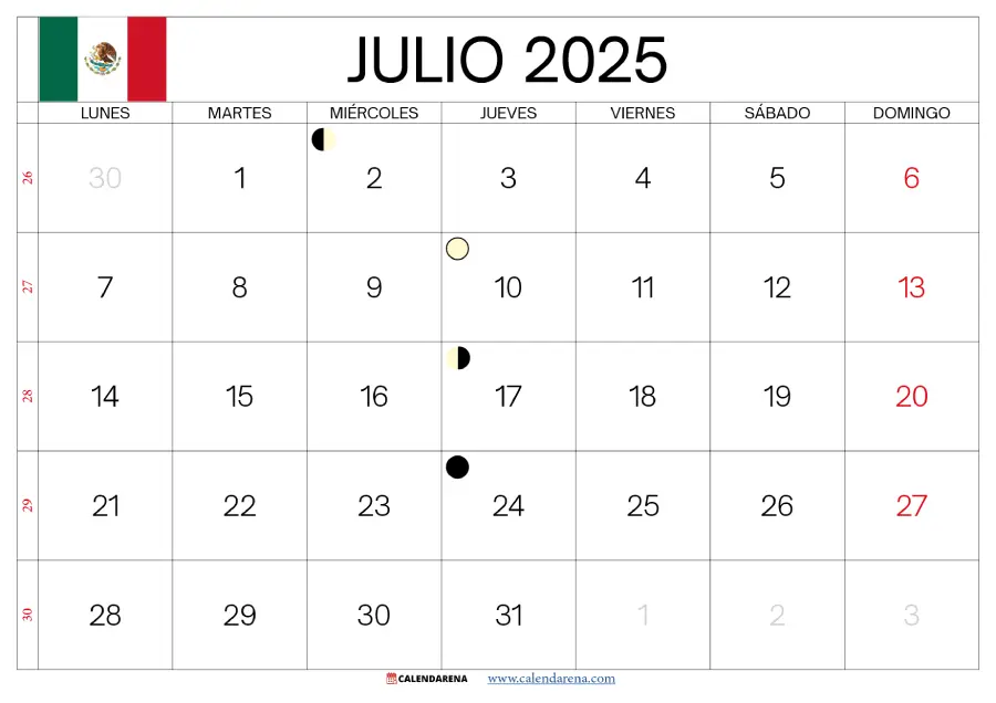Calendario De Julio 2025 México: Fases Lunares y Días Especiales