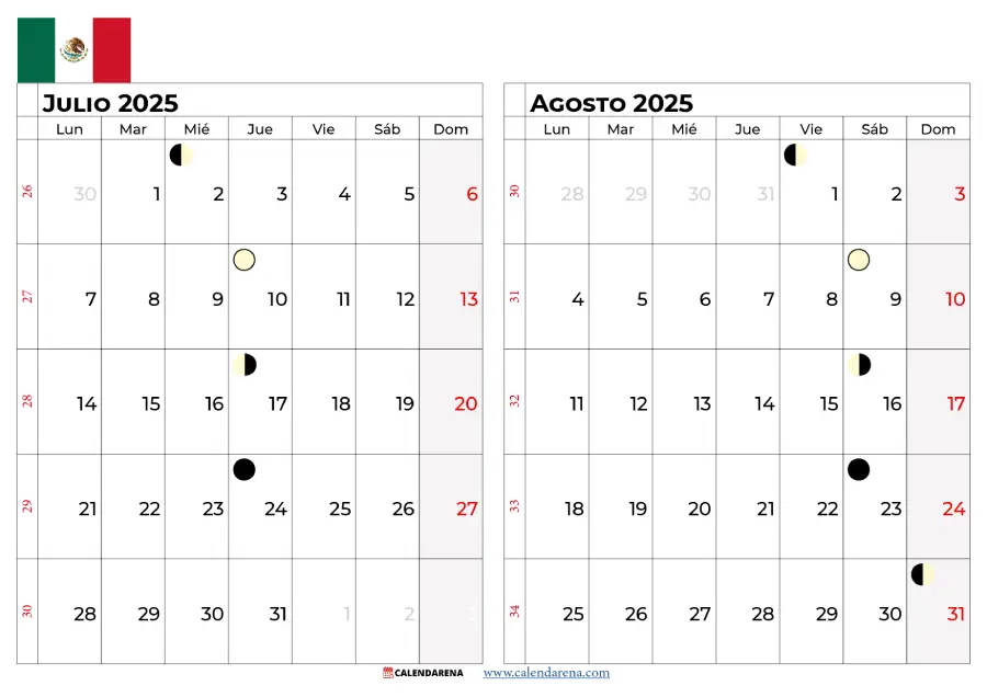 Calendario Julio y Agosto 2025 México: Planificación para Dos Meses