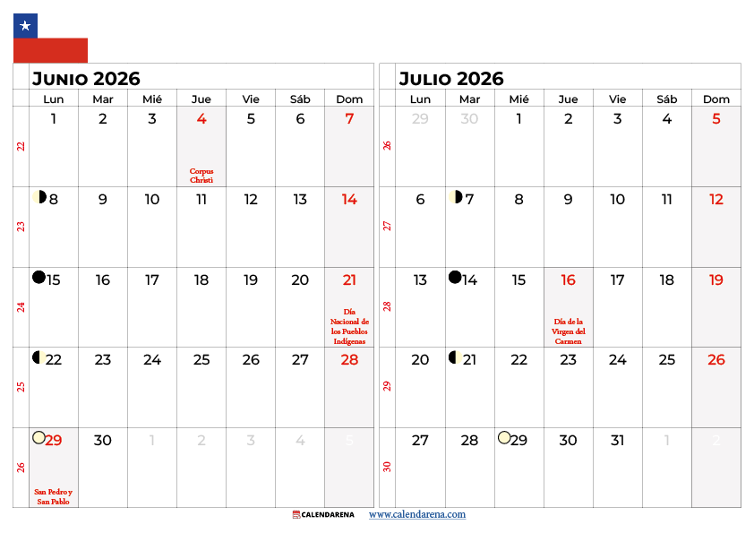 Calendario Junio 2026 Chile: Opciones Imprimibles