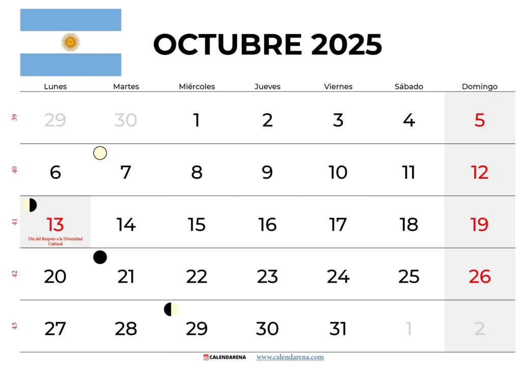 Octubre 2025 Calendario Argentina: Fechas clave y eventos destacados