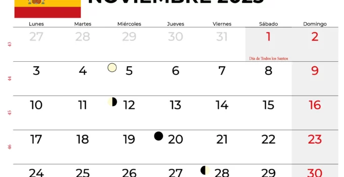 Organiza tu mes con nuestro calendario noviembre 2025. El noviembre 2025 calendario es perfecto para Argentina, Chile, Colombia, México y España. Consulta el calendario lunar noviembre 2025 para seguir las fases de la luna. Además, no te olvides de nuestro calendario noviembre 2025 con festivos para no perderte las celebraciones locales.