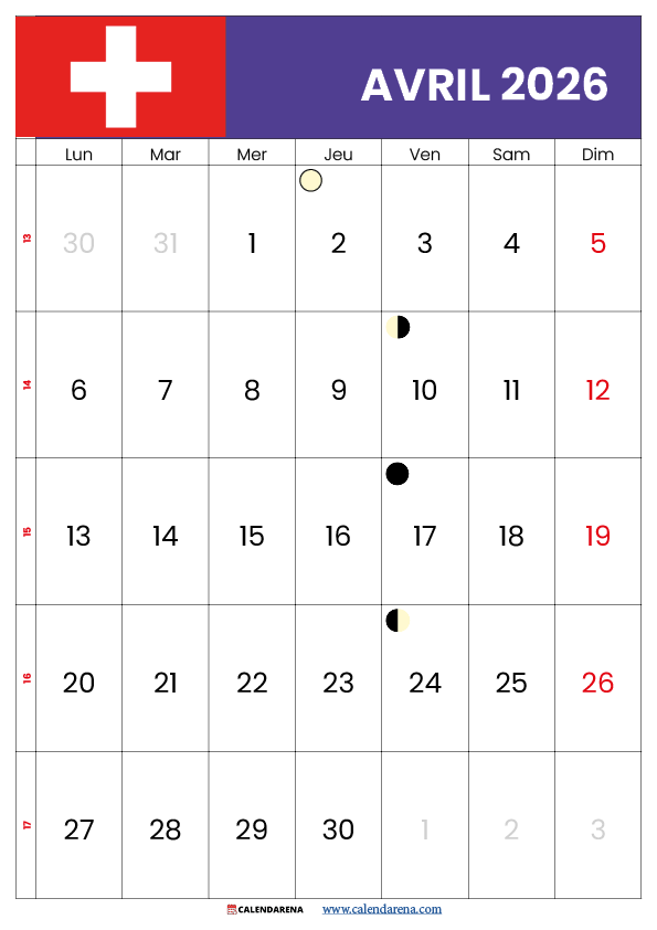 Calendrier Avril 2026 Suisse : Guide Complet