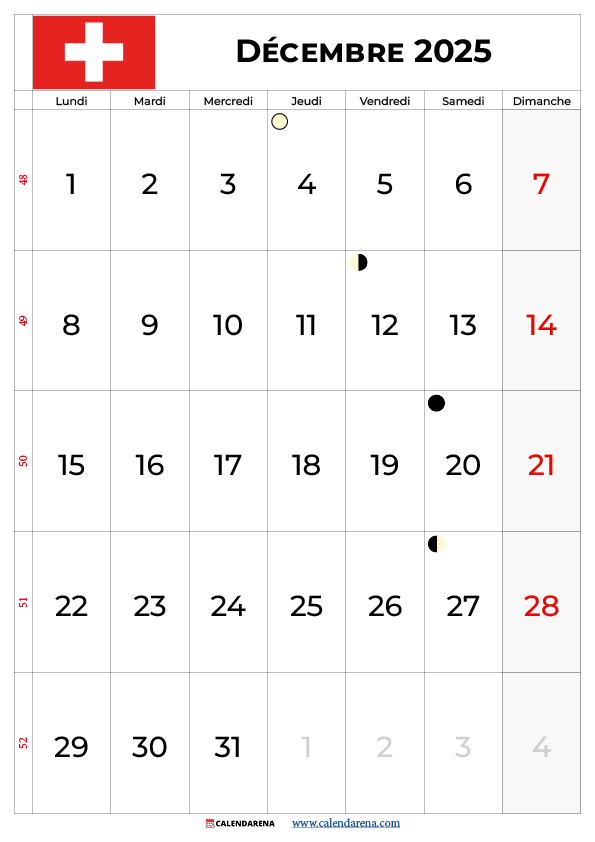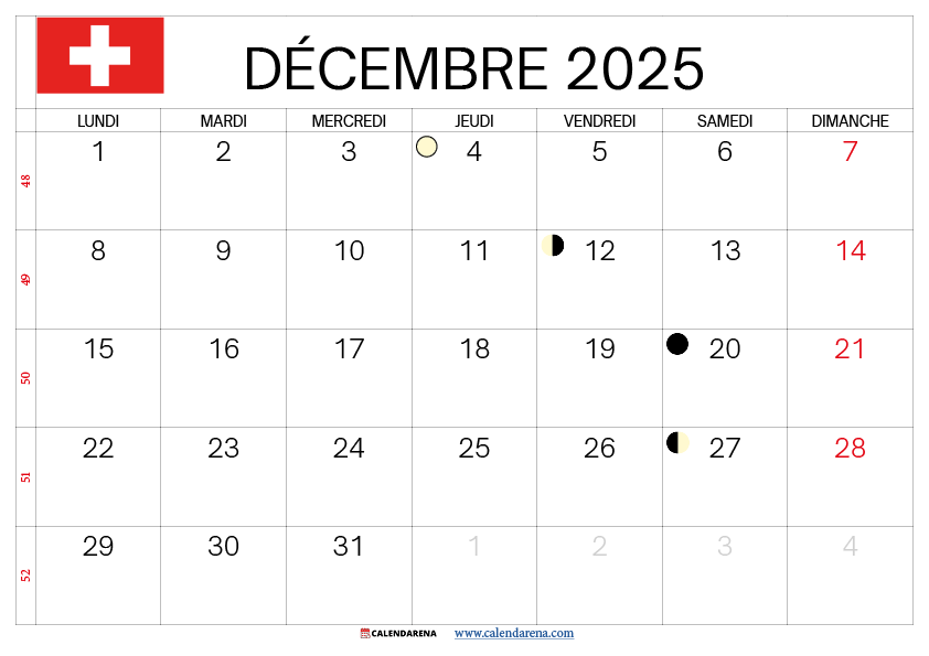 Un Calendrier Décembre 2025 À Imprimer Suisse bien conçu constitue un outil indispensable pour naviguer efficacement à travers les complexités culturelles et administratives de la fin d’année suisse. En intégrant les jours fériés spécifiques, les phases lunaires et les particularités régionales, vous disposez d’un guide complet pour une organisation optimale.