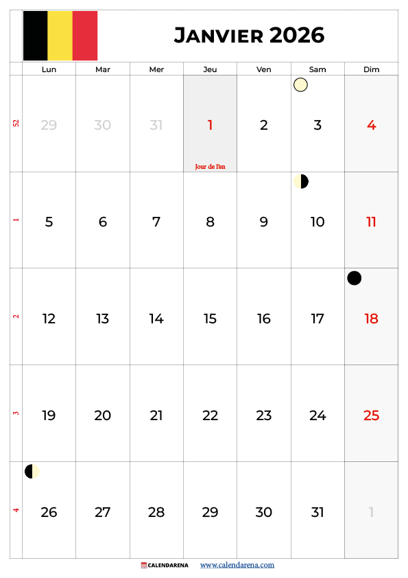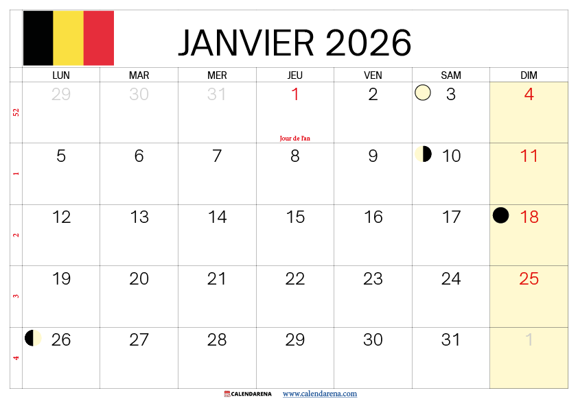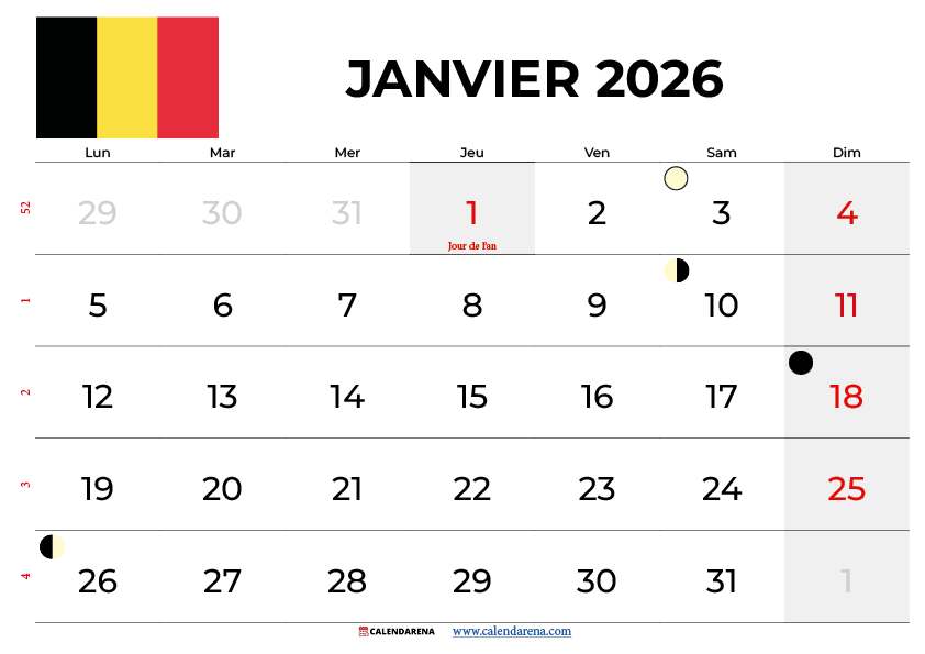 Notre Calendrier Janvier 2025 Pdf Belgique est disponible en plusieurs formats :