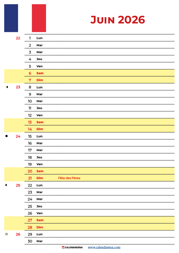 Juin 2026 Calendrier