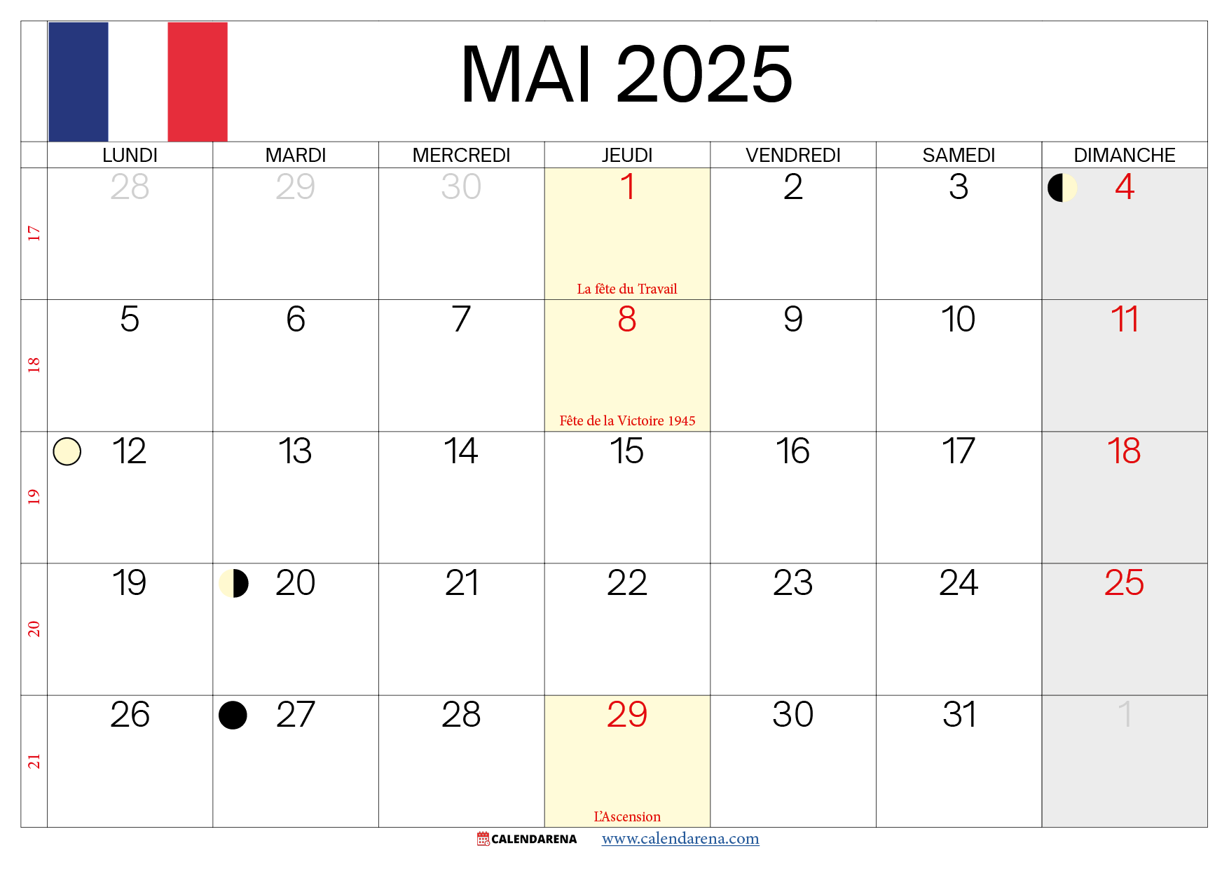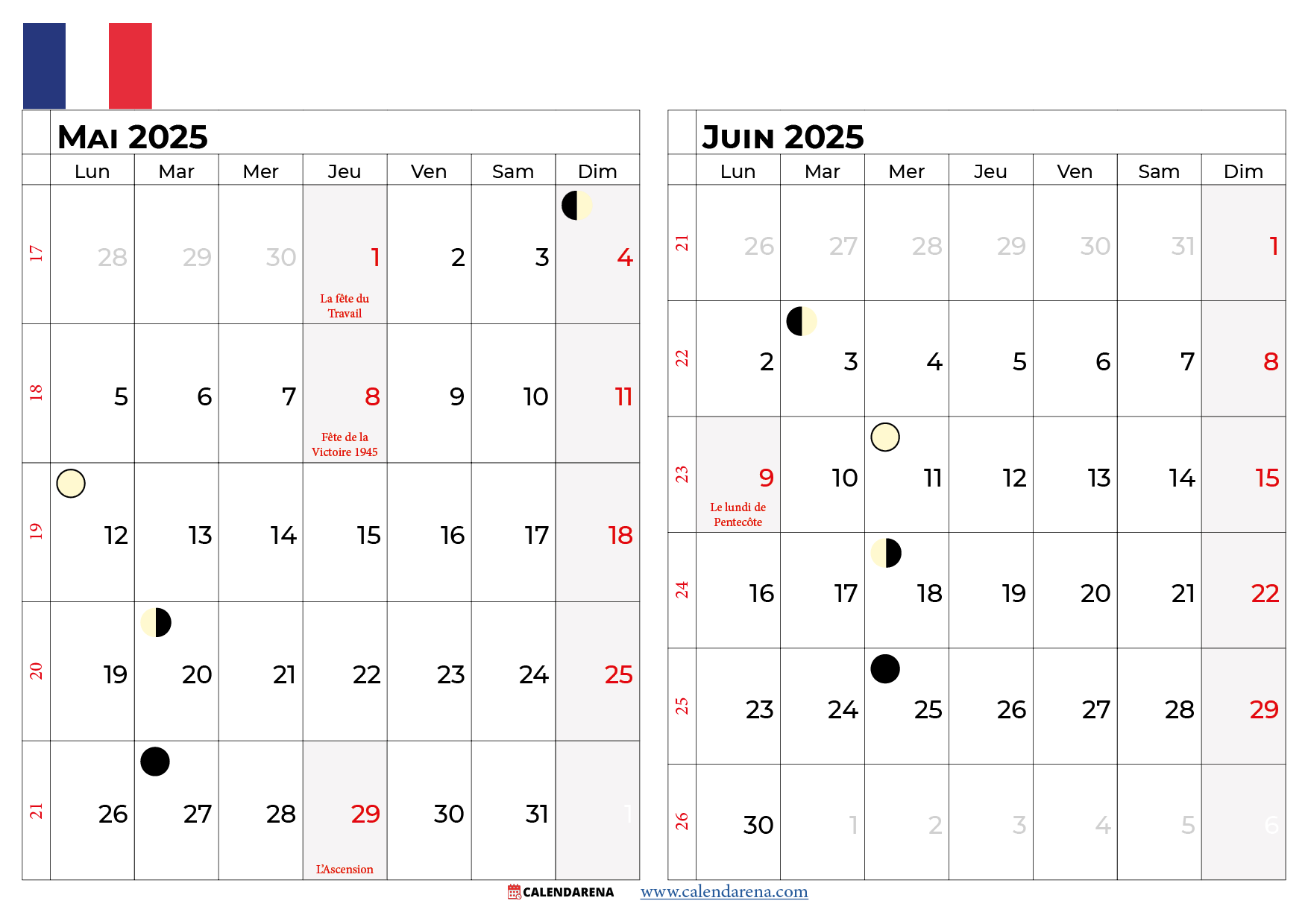 Calendrier mai juin 2025 France