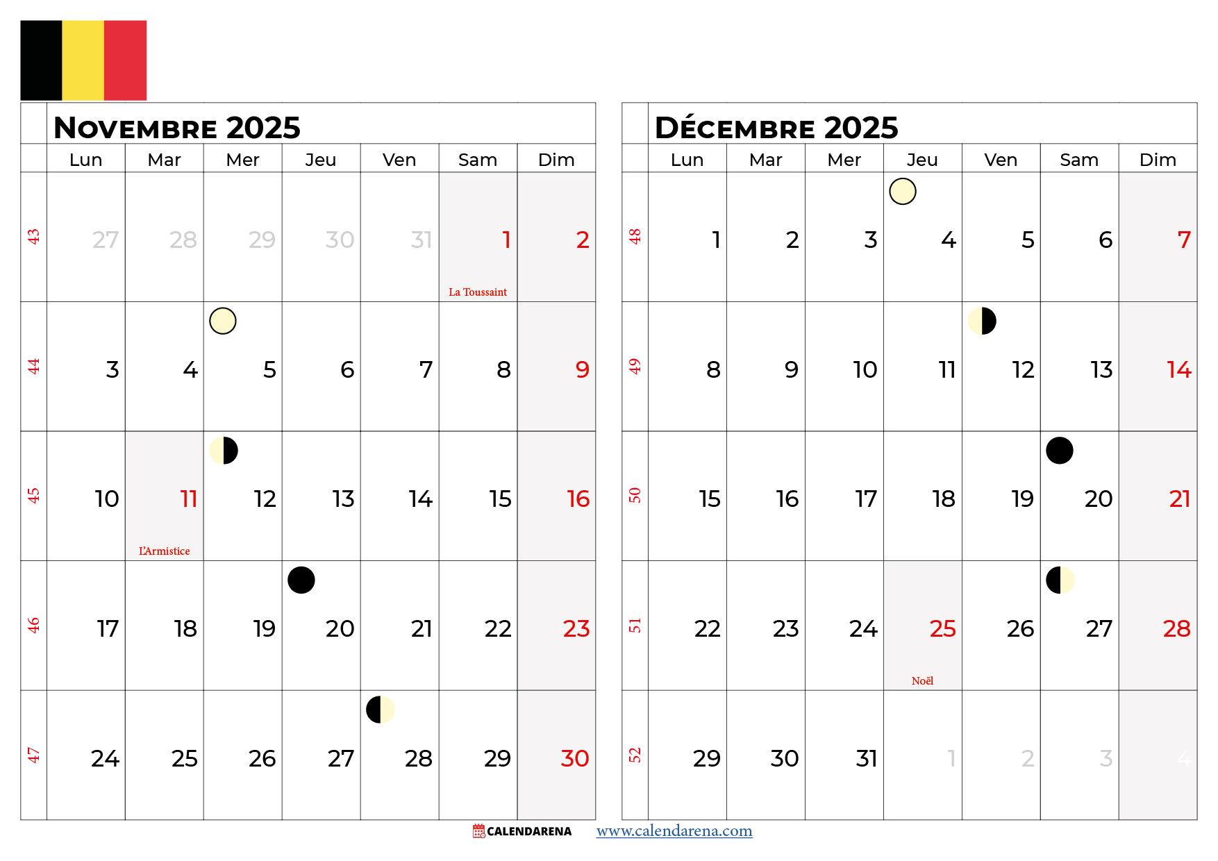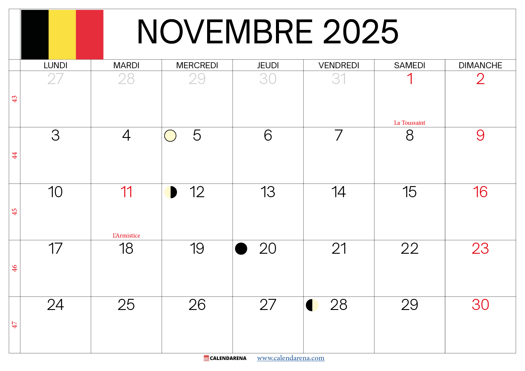 Novembre 2025 Calendrier Belgique: Formats et Options
