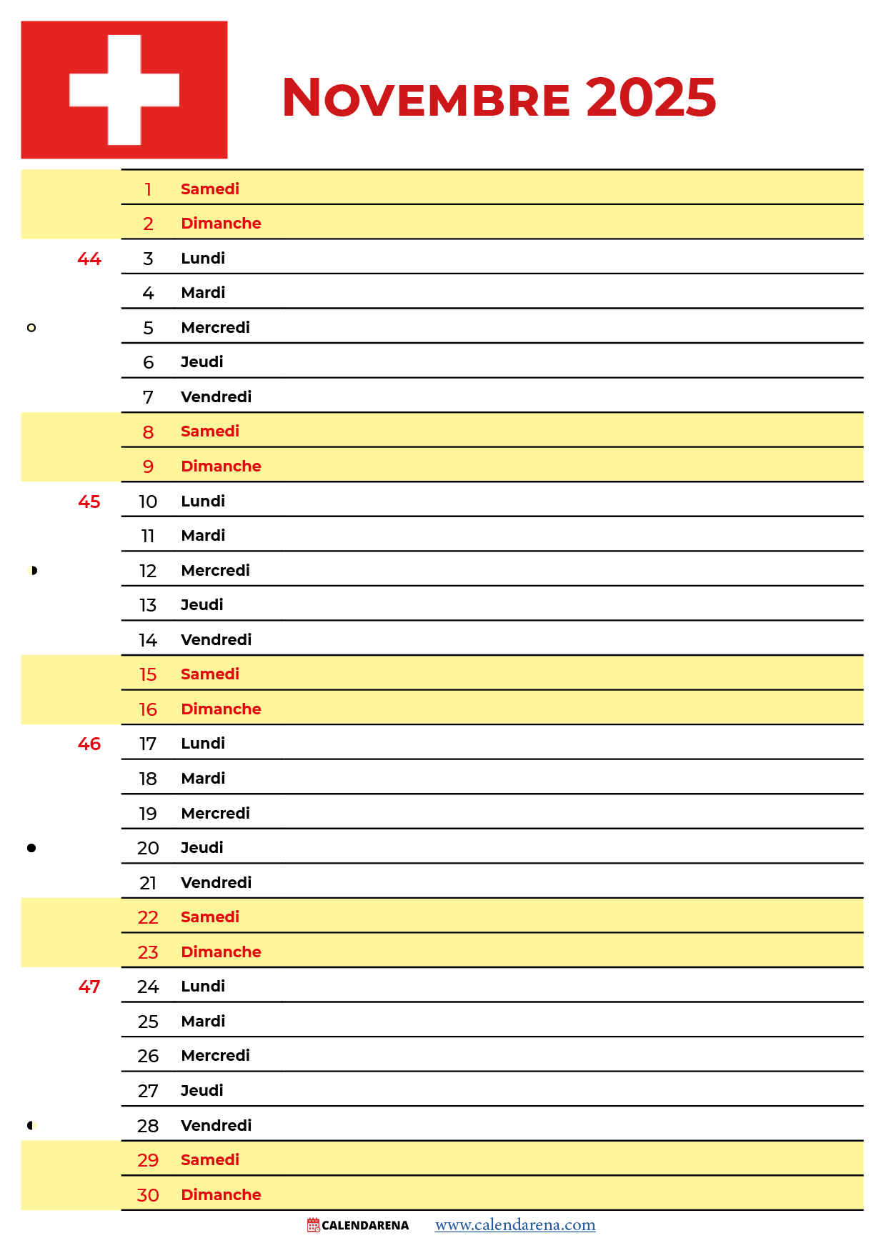 Planning Novembre 2025 Suisse pour une Organisation Optimale