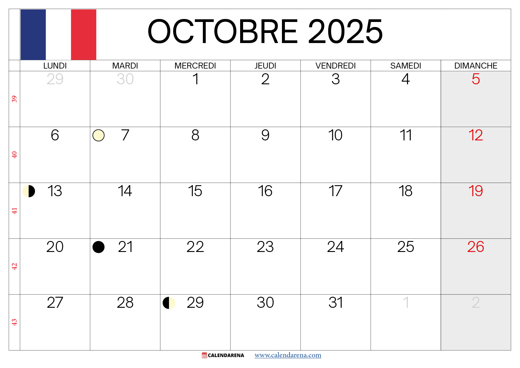 Calendrier Octobre 2025 À Imprimer Gratuitement – Vacances, Planning et Phases Lunaires