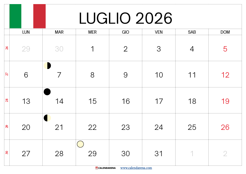 Calendario Luglio 2026: Panoramica Generale del Mese
