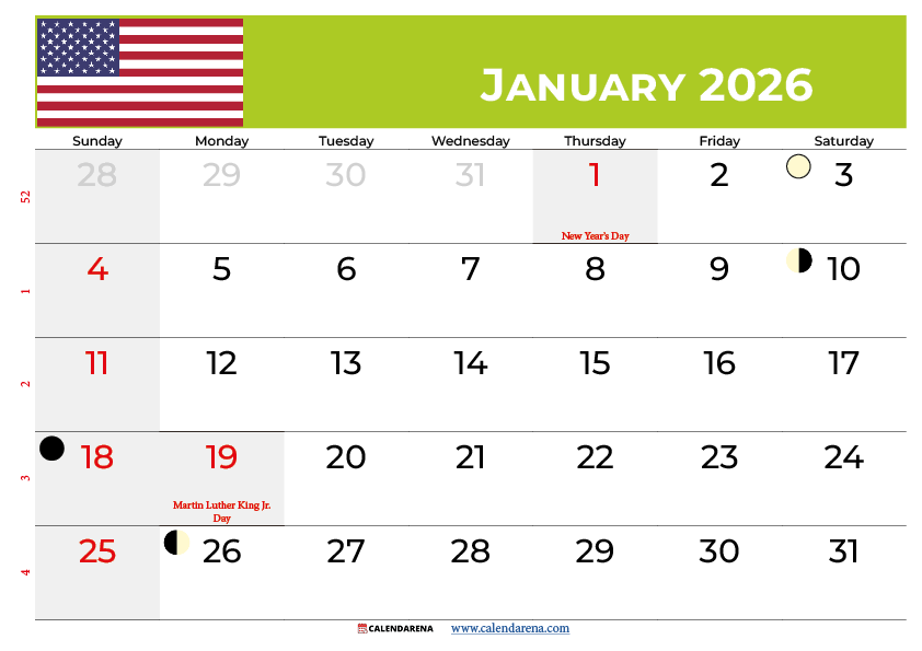 The January 2026 Calendar With Holidays includes several significant dates that shape the month’s rhythm. New Year’s Day falls on Thursday, January 1st, providing an excellent opportunity for goal-setting and reflection. Martin Luther King Day, observed on Monday, January 19th, offers a federal holiday that many use for community service and reflection on civil rights progress.