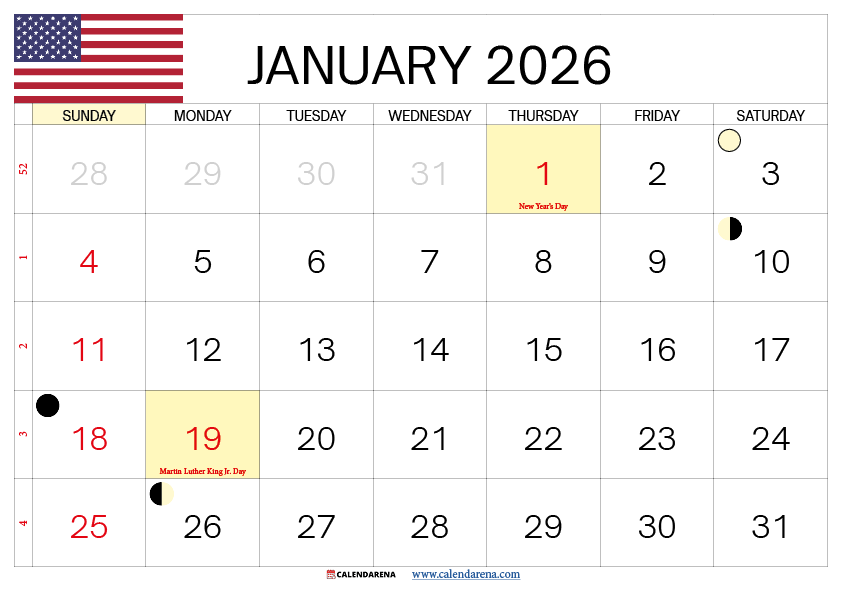 The 2026 Calendar January offers a fresh start with 31 days of opportunities to achieve your goals and establish productive routines. January 2026 begins on a Thursday and includes several significant holidays and observances that can impact your planning decisions.