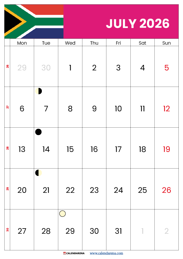 July Calendar 2026 South Africa