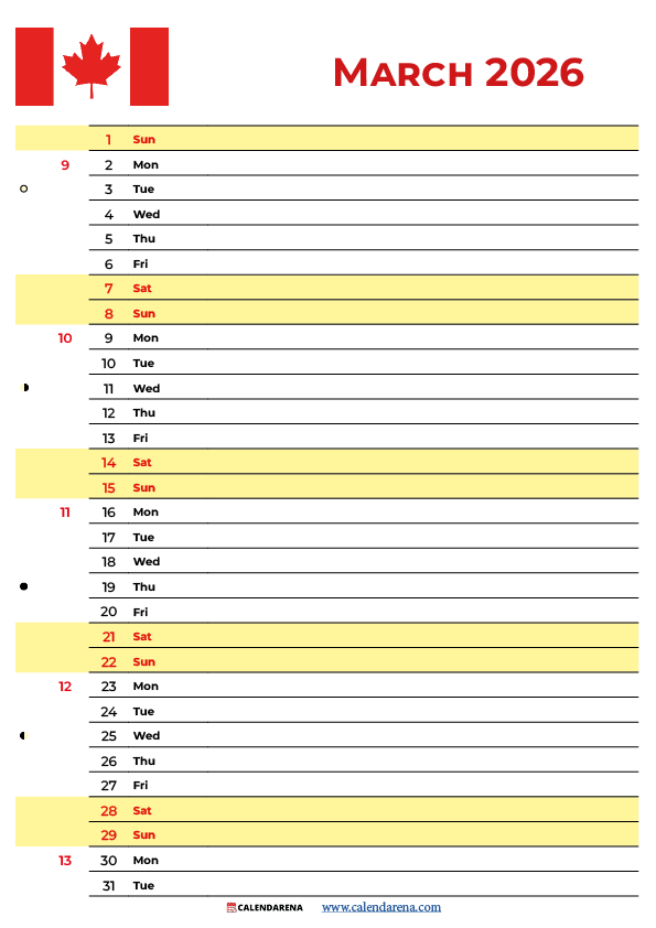 Printable calendars, however, provide tangible benefits that digital formats cannot replicate. Physical calendars require no batteries, internet connection, or technical troubleshooting, offering constant reliability. The act of physically writing on a March 2026 Calendar Canada With Holidays creates stronger cognitive connections than typing, potentially improving commitment to planned activities. Visual wall displays provide household members shared access without requiring individual devices or logins.