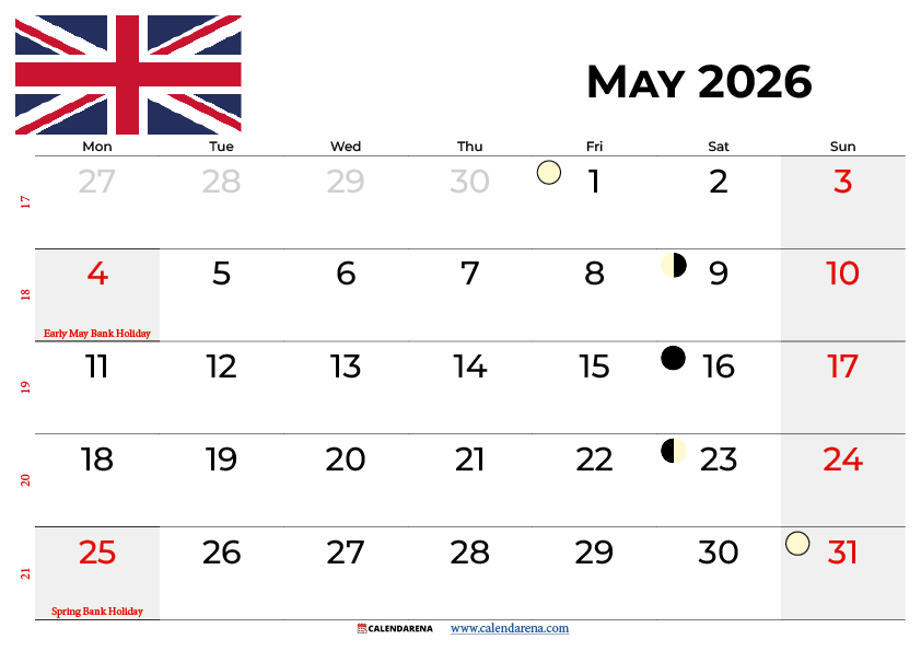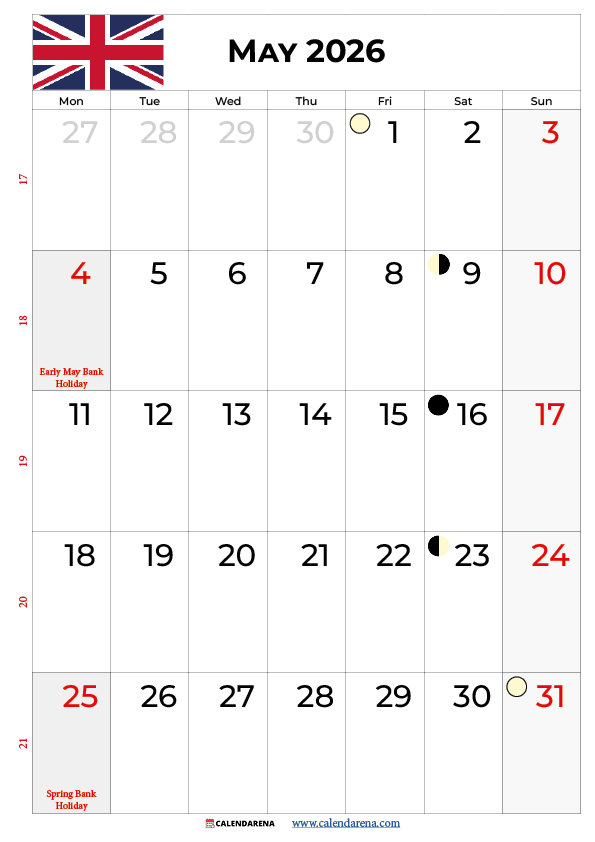 May 2026 Calendar UK: Free Printable Templates & Holidays