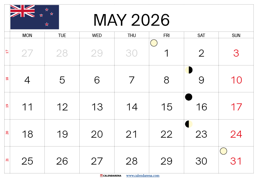 May Calendar 2026 NZ: Free Printable PDF & JPG Downloads