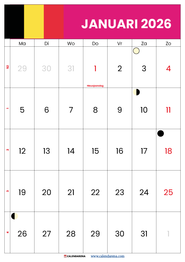 Kalender Januari 2026 Pdf België – Gratis Downloads