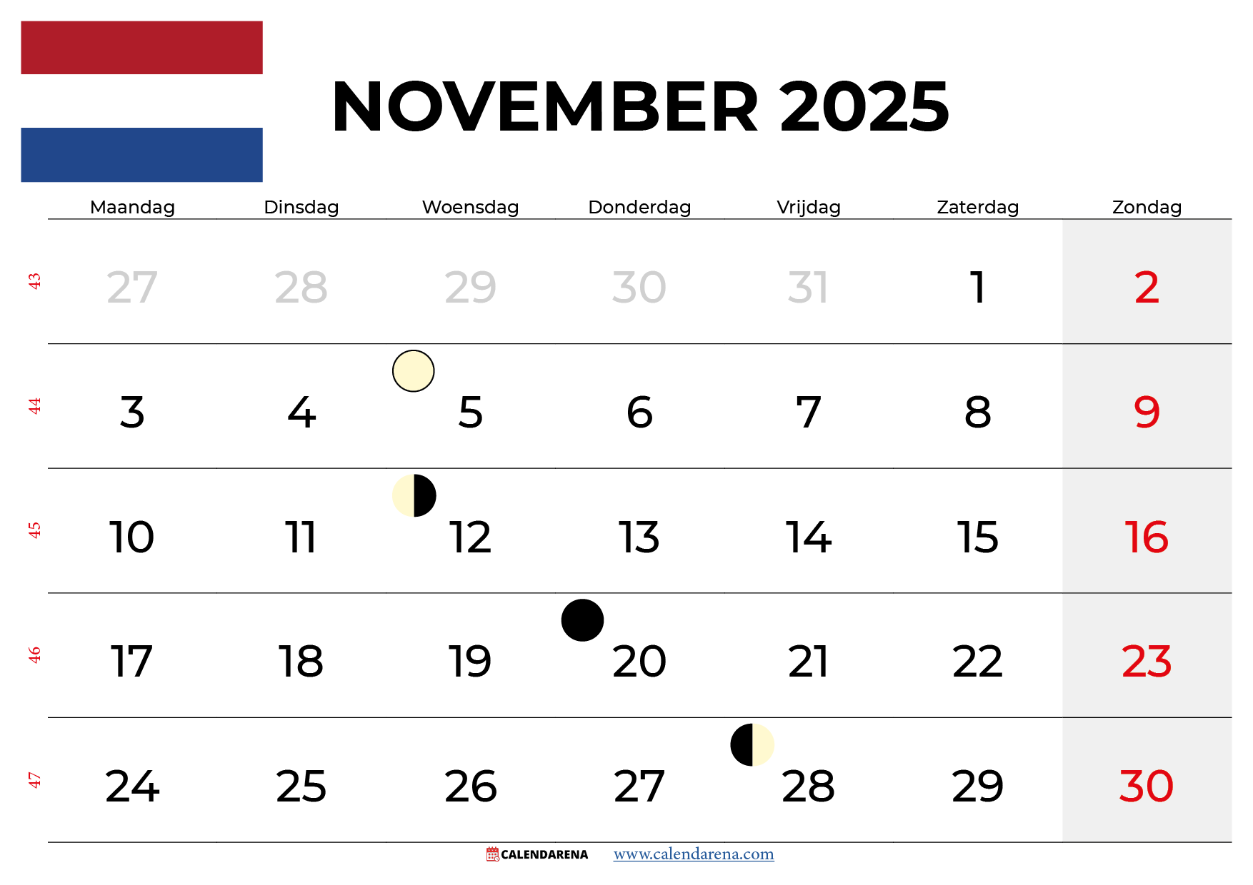 Kalender November 2025 Nederland
