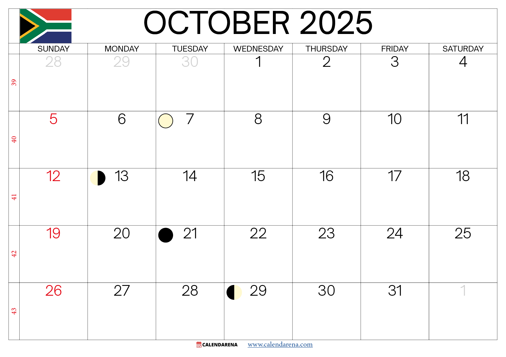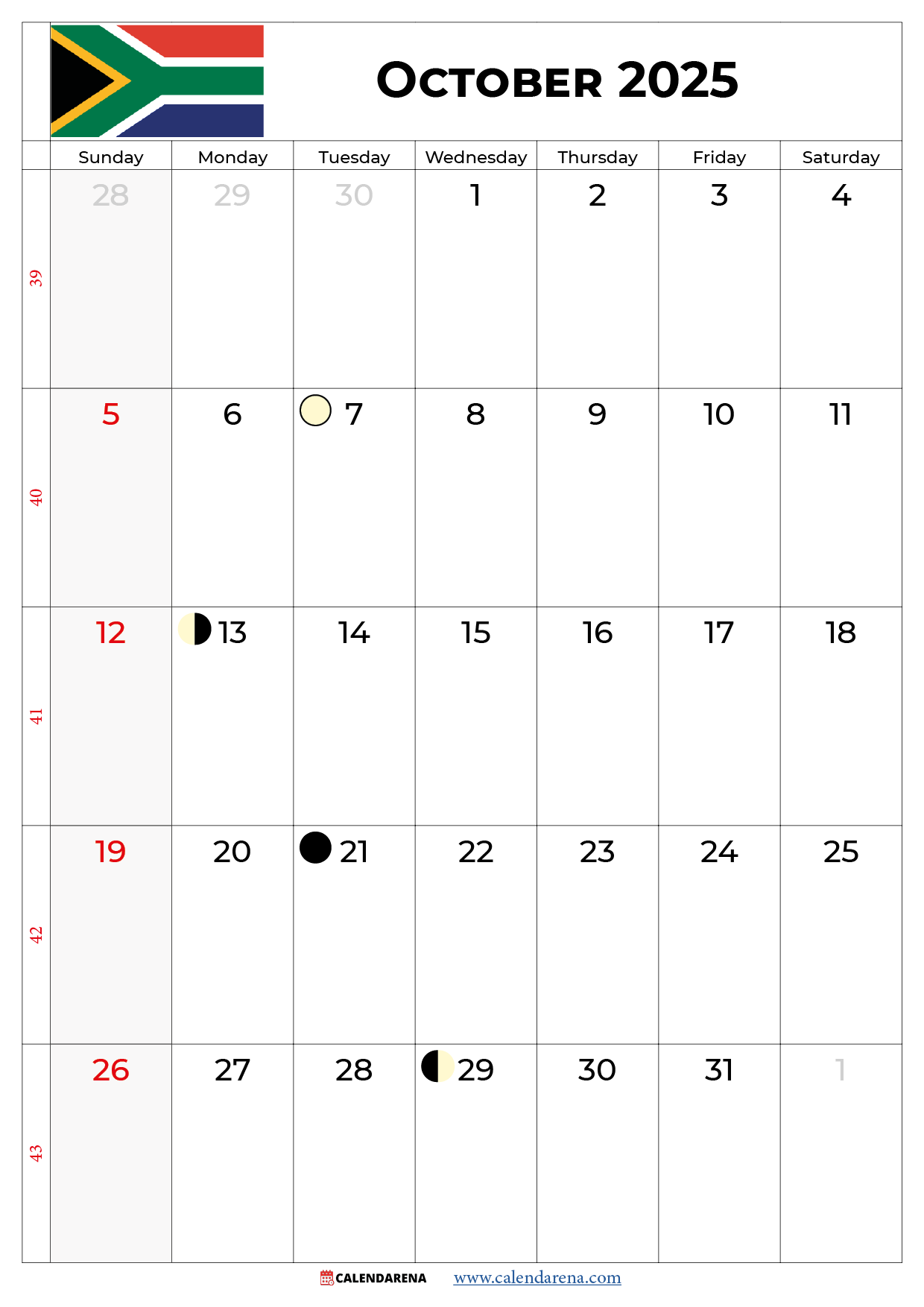 Free October 2025 calendar South Africa Printable: Organize Your Month with Ease