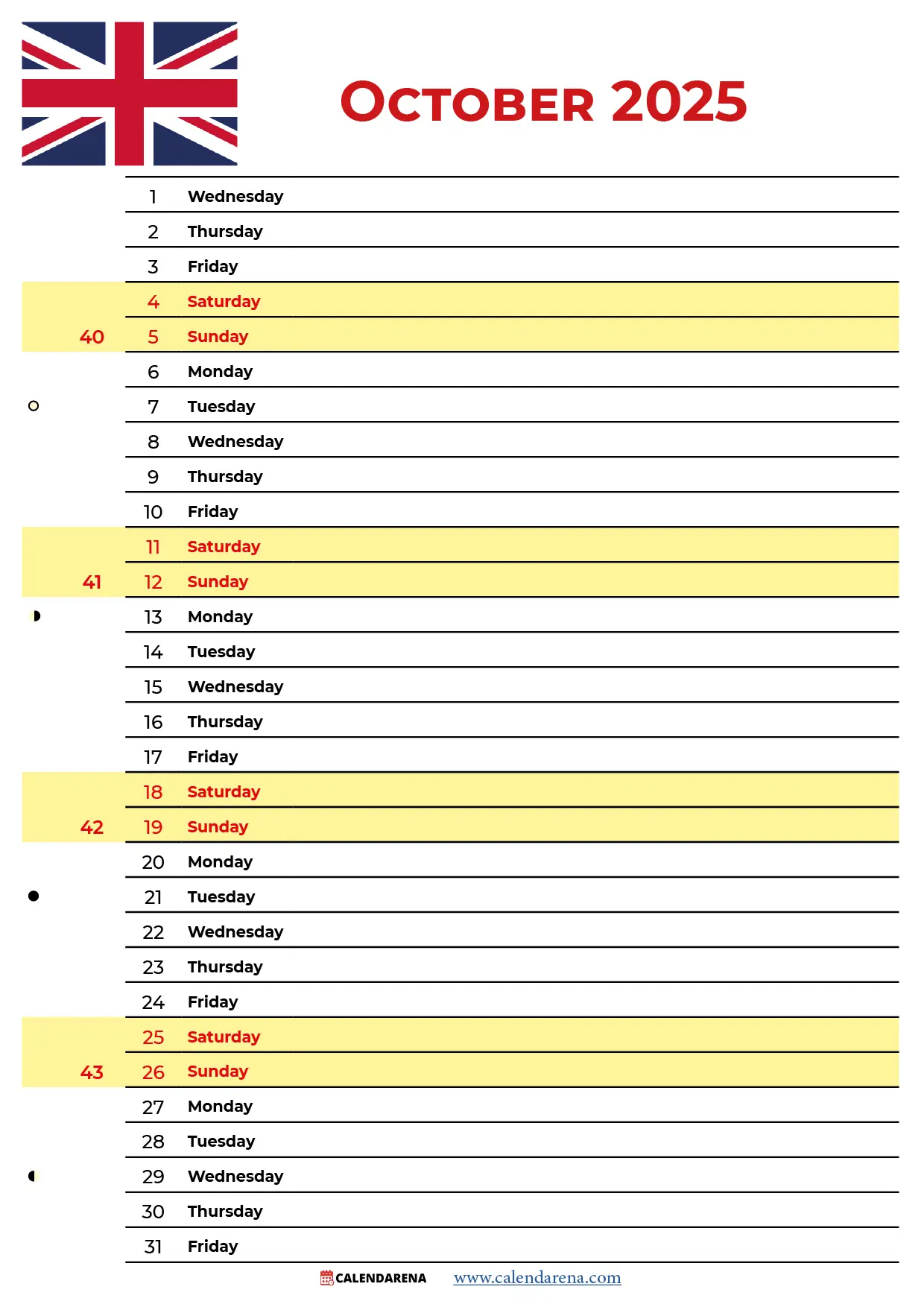 October 2025 Calendar With Holidays UK: Organize Your Month with Ease