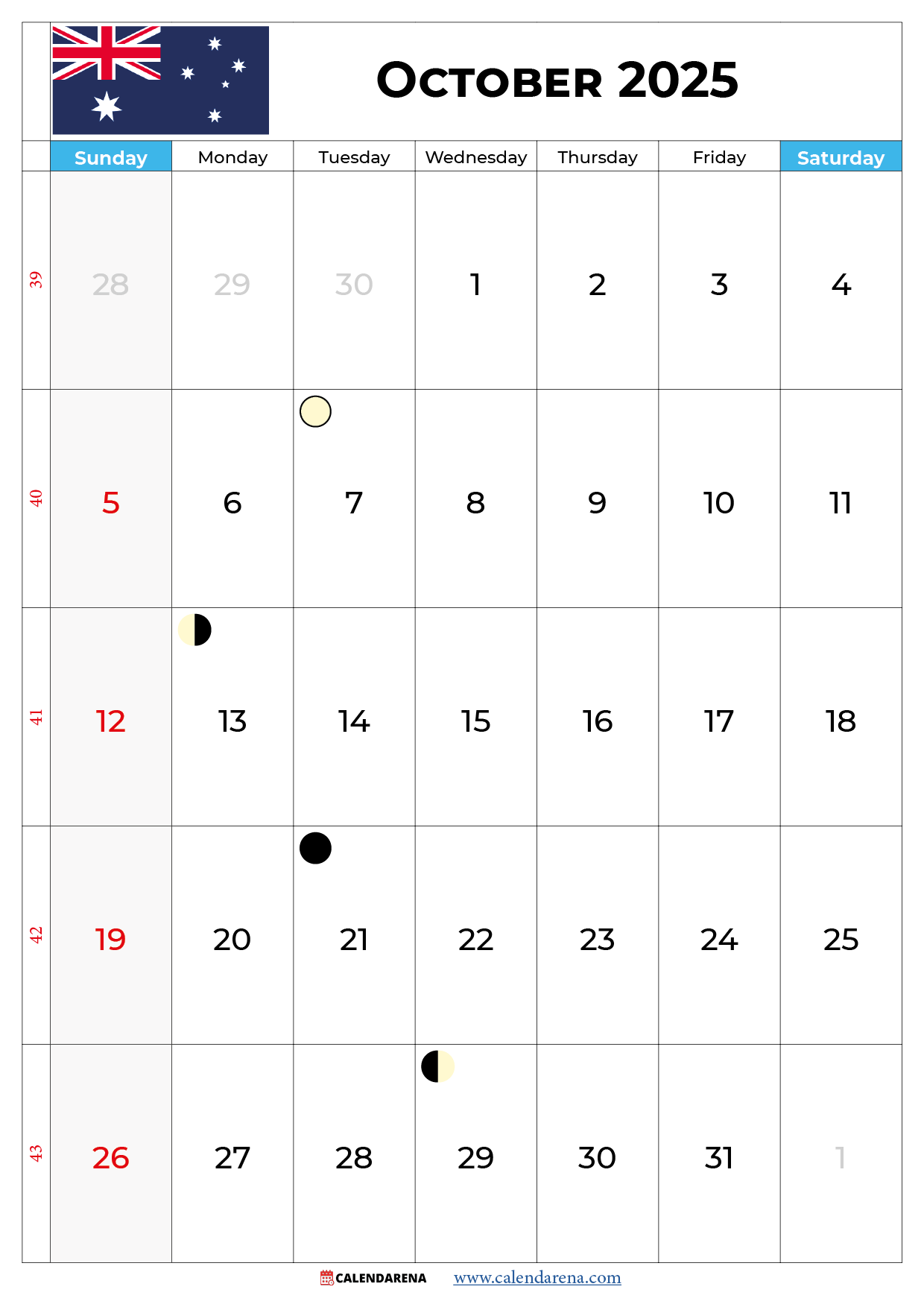 Our free downloadable calendars for October 2025 are designed to keep you informed and organized, featuring all public holidays, school term dates, and lunar phases pertinent to Australia. Stay ahead with our comprehensive planning tools.