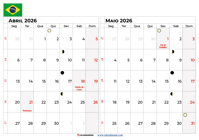 O Calendario Abril E Maio 2026 combinado oferece perspectiva ampliada do planejamento: