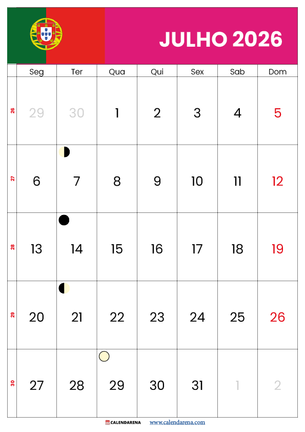 Calendário Julho 2026 Portugal: Visão Geral do Mês